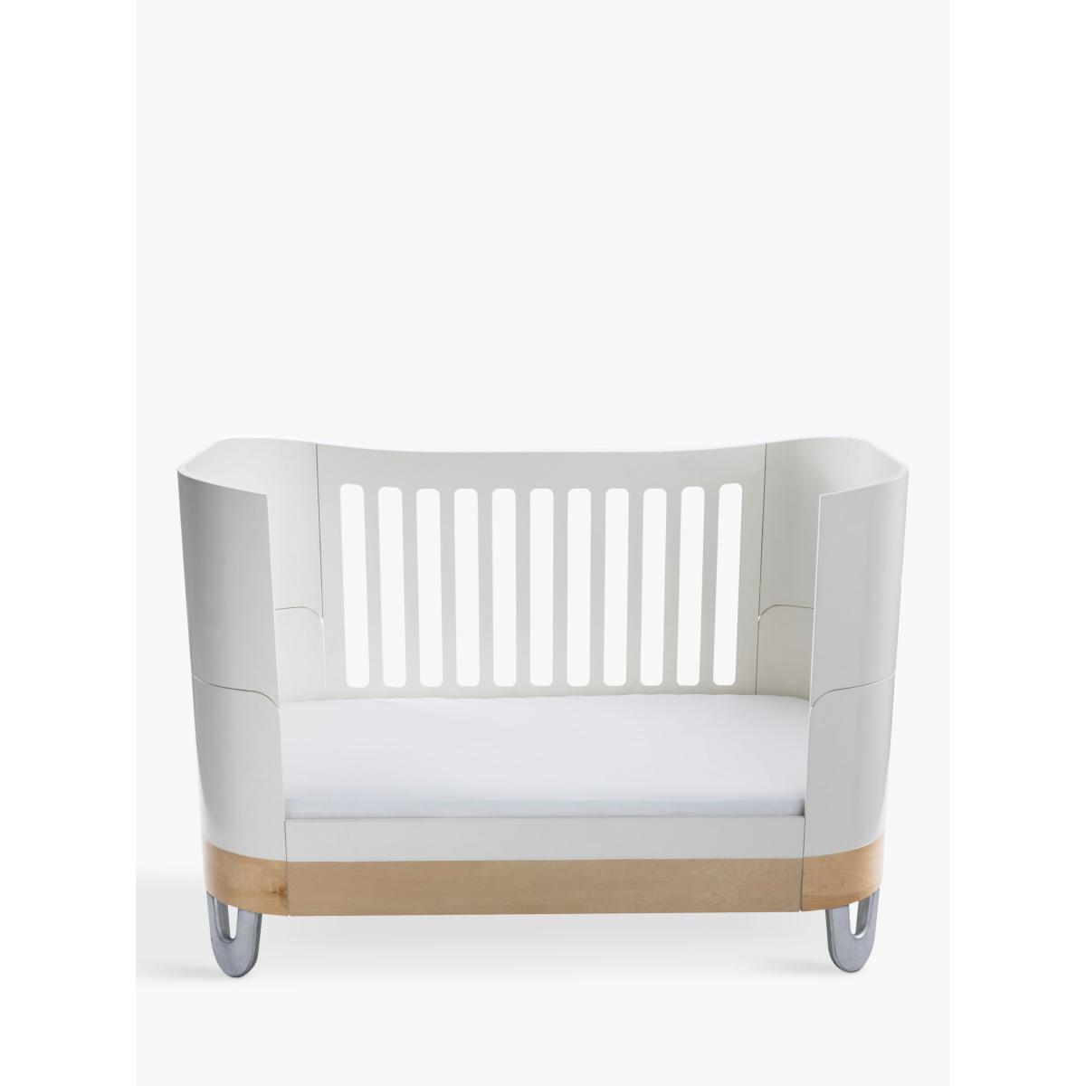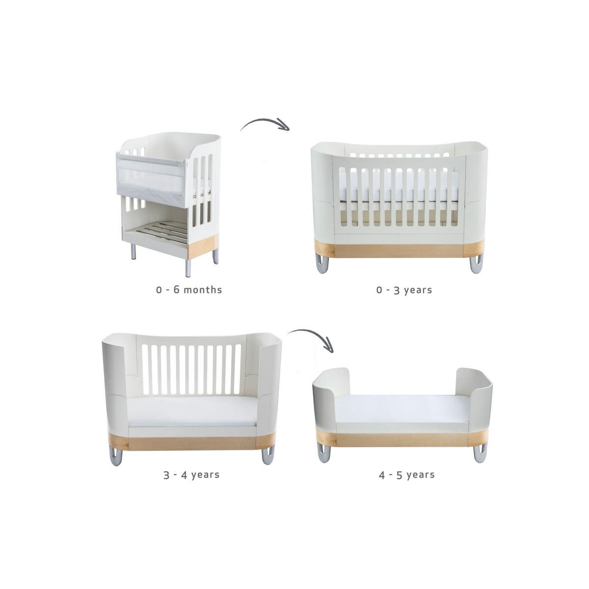 With a unique design that grows in perfect symmetry with your baby from birth up to 5 years old, the Serena Complete Sleep+/ Co-Sleep crib from Gaia Baby is the ideal all in one choice for parents who value longevity. With its soft contours and smooth flowing lines, it creates a tranquil and calm environment for your baby's sleep throughout multiple stages of their life. This adaptable piece has four main stages of conversion: Stage 1 - Co-sleeping Crib suitable for babies 0-6 months. This package comes with the Co-Sleeping Adaptor (including co-sleeper mattress) that allows you to use it as a beside crib for the first six months of baby's life. In this stage the crib has 6 possible mattress height adjustments from 48 cm to 66cm (max) to ensure perfect alignment with your bed. Stage 2 - Full-size Cot (70 x 140cm) For when baby starts to pull up and is ready to sleep a bit more independently or in their own room. Stage 3 - Toddler Bed Ideal for when baby becomes an inquisitive toddler Stage 4 - First Bed For the first steps towards complete independent sleeping. This stage will last until they are approximately 5 years old. The Complete Sleep Crib is certified to the highest global standards for co-sleeping and made from 100% FSC certified birch wood & natural un-dyed fabrics. The slatted sides and base and a fully breathable side mesh panel ensure maximum ventilation and breath-ability for your baby. Gaia Baby products are sustainably sourced, ethically manufactured and made to last the test of time. Good to know: You can extend the life of your Complete Sleep even further with the Junior Bed Extension Kit (sold separately) for kids up to 10 years. Please note: The co-sleeping crib mattress is included, a new mattress needs to be purchased when it is to be used as a cotbed. Assembled Dimensions: Crib Mode = H101 x W70 x D53.5cm. Full-size Cot / Toddler Bed = H101 x W70 x D140cm First Bed = H61 x W70 x D140cm