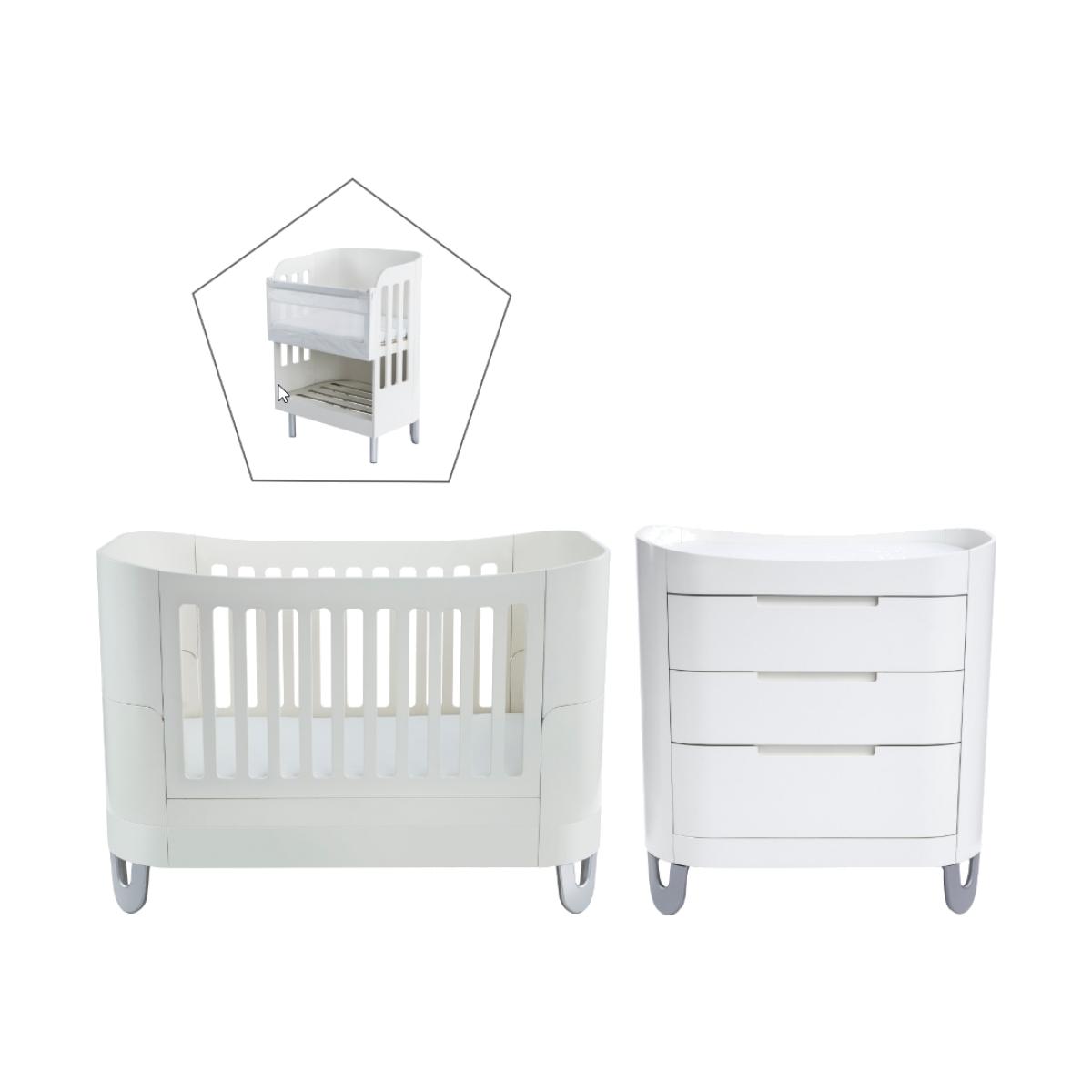 Gaia Baby Serena Complete Sleep Cot Bed + Co-Sleep Nursery Set - White and Natural