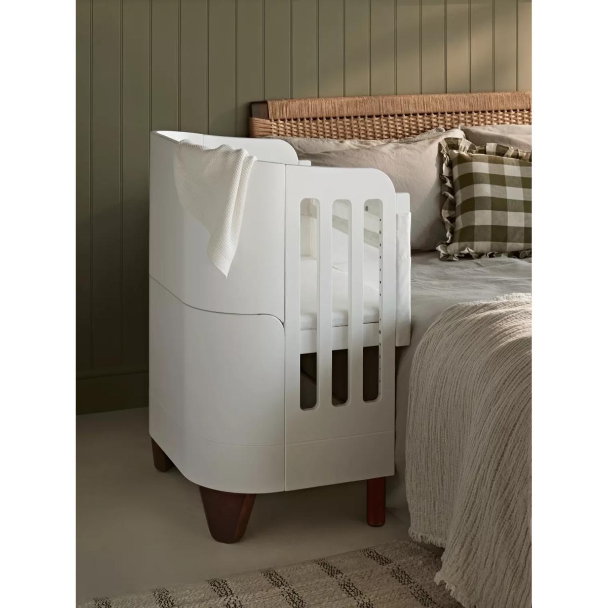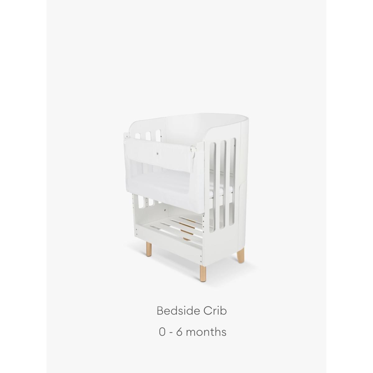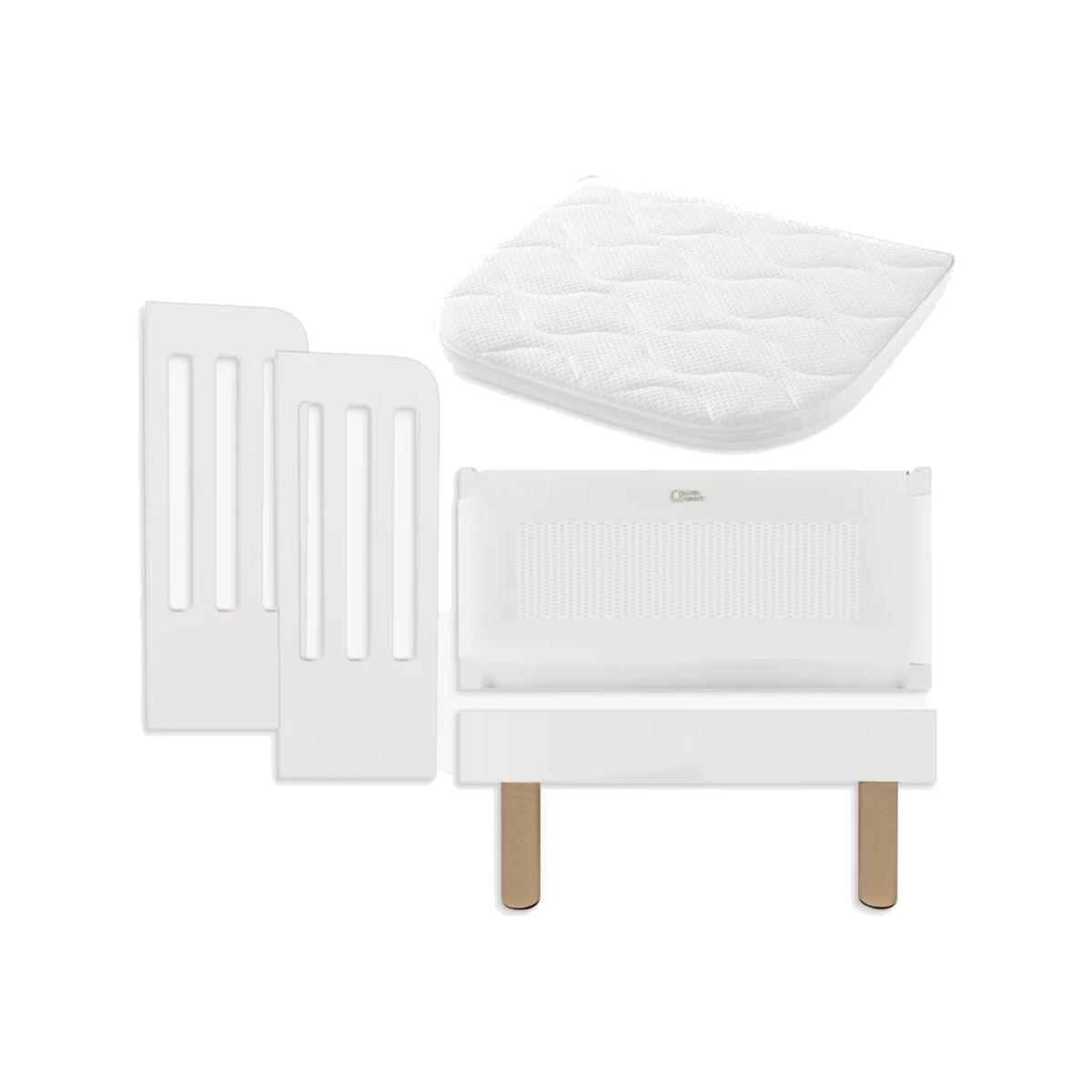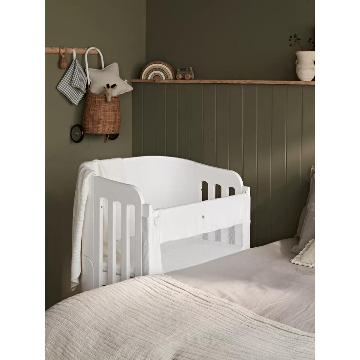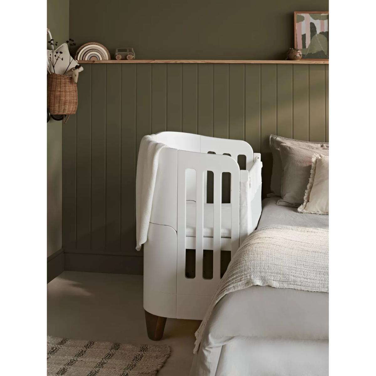 Includes all parts required to set up your Serena Cot Bed or Mini-Cot as a fully safety-certified next-to-me crib for your newborn baby. Tested to the latest global standards, the Serena Bedside Crib offers a safe and secure sleep space for your newborn. With 6 different height adjustments, you can ensure your baby is fully visible 'next-to-me' as you sleep. Fully breathable and ventilated, your baby will be safe and secure in its own sleep space. Includes Serena Bedside Crib mattress with 'Cool-Plus' technology. The Serena Bedside crib mattress has a fully breathable soft core encased in a luxurious ventilated polyester cover. The zippable cover can be removed and washed at 40 degrees for optimum hygiene. Features Adaptive technology - Treats the textile with a temperature-sensitive polymer and provides a dynamic response: the warmer it gets, the more Adaptive will evaporate moisture. More evaporation means a dryer and cooler sleeping environment. Supplied with premium quality newborn-friendly mattress. Customise to co-ordinate with your Serena Cot Bed or Mini Cot with your choice of Natural or Walnut legs. Fully certified Bedside Crib suitable from birth up to 6 months. 6 possible mattress height adjustments from 66cm (max) to 48cm. Slatted sides and base ensure maximum ventilation. Surface sleeping area 66 x 53 cm. Made from 100% real wood. Composite free and guaranteed low emissions Textile parts made from 100% organic cotton Made in the UK Ethically manufactured in CSO certified family-run factories EN1130:2019 Includes Serena Bedside Crib mattress with 'Cool-Plus' technology. The Serena Bedside crib mattress has a fully breathable soft core encased in a luxurious ventilated polyester cover. The zippable cover can be removed and washed at 40 degrees for optimum hygiene. Features Adaptive technology - Treats the textile with a temperature-sensitive polymer and provides a dynamic response: the warmer it gets, the more Adaptive will evaporate moisture. More evaporation means a dryer and cooler sleeping environment.