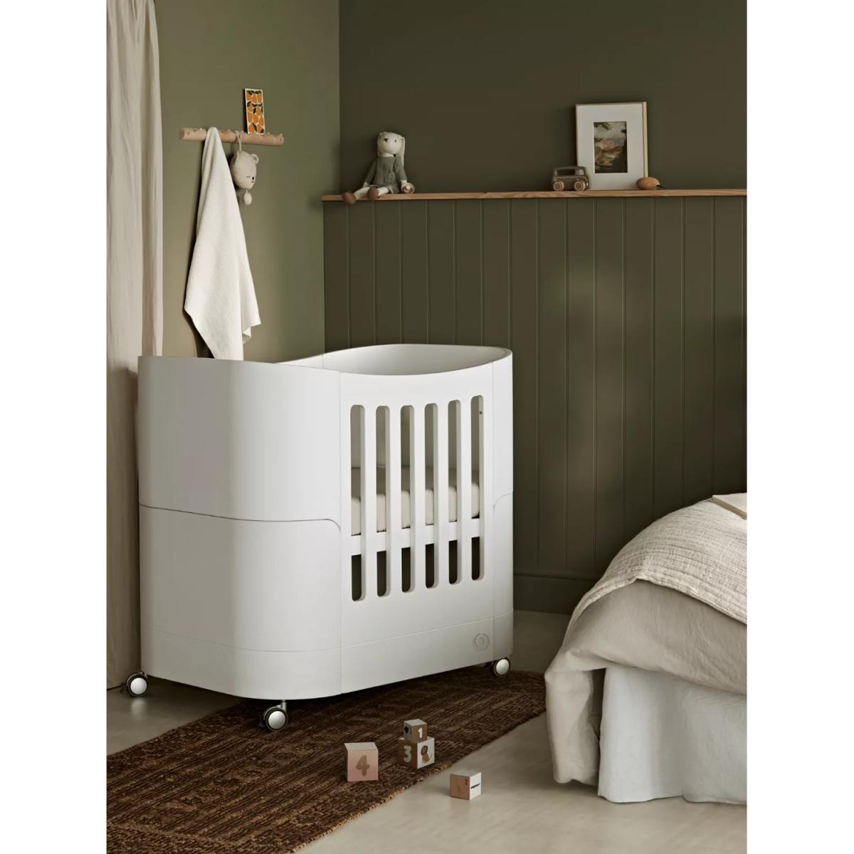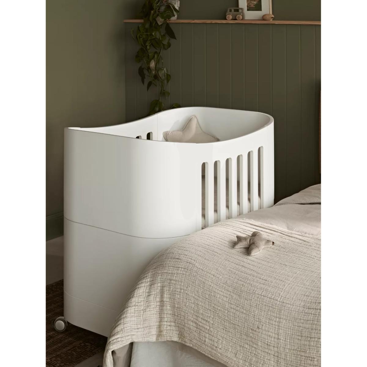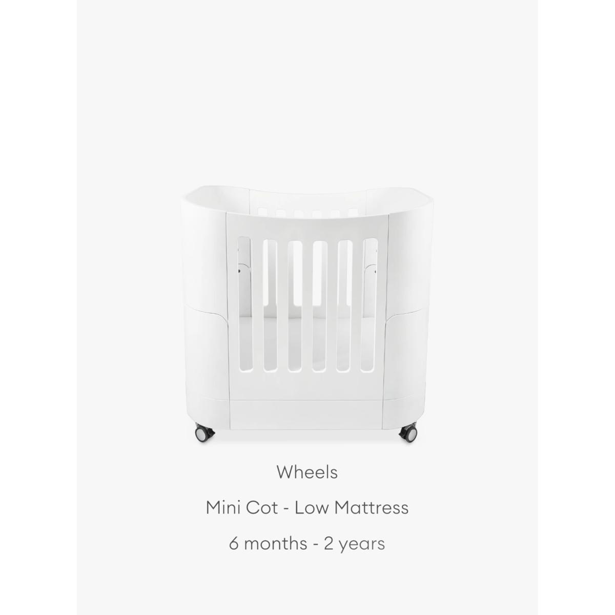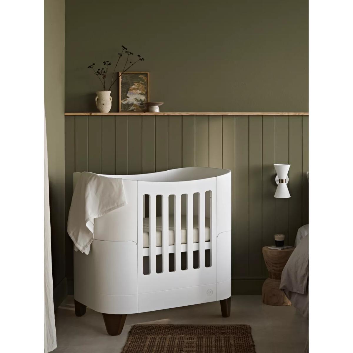 The Serena Mini Cot is the ideal bedside cot that can be used from birth up to 2 years old. Made from 100% natural wood and compact in size, the Serena Mini Cot easily converts from newborn(0-6 months) to baby cot(6 months to 2 years). Supplied with lockable swivel wheels, the Serena Mini Cot can be easily moved from room to room. Handcrafted from sustainably sourced birch wood, the Serena Mini Cot is 100% composite-free, guaranteed low emissions and built to last the test of time. It is certified to the highest global safety standards for cribs/ child beds. Gaia Baby products are sustainably sourced, ethically manufactured and made to last the test of time. All in all, simply beautiful parenting! Solid wood Mini-Cot. Suitable from newborn-2 years with optional extension to 5yrs+ Compact with lockable swivel wheels for movement from room to room. Height adjustable base with newborn and baby settings Handcrafted from sustainably sourced birch wood. Composite-free and guaranteed low emissions. Customise with your choice of Natural or Walnut finish legs Fully safety certified to global standards for cribs Ethically manufactured in CSO certified, family-run factories Meets EN 716-1&2:2017 + AC:2019 (Mini & Cot Bed), BS EN 716-1/2:2017 (Toddler Bed) & BS 8509:2008+A1: 2011, BS 8509:2008+A1: 2011 (First Bed) ; AS/NZS 2172:2013 safety standards. Good to know: You can extend the life of your Mini Cot up to 5 years with the Mini Cot Bed Extension (purchased separately). The compatible mattress is the Serena Mini cot Mattress sold separately.