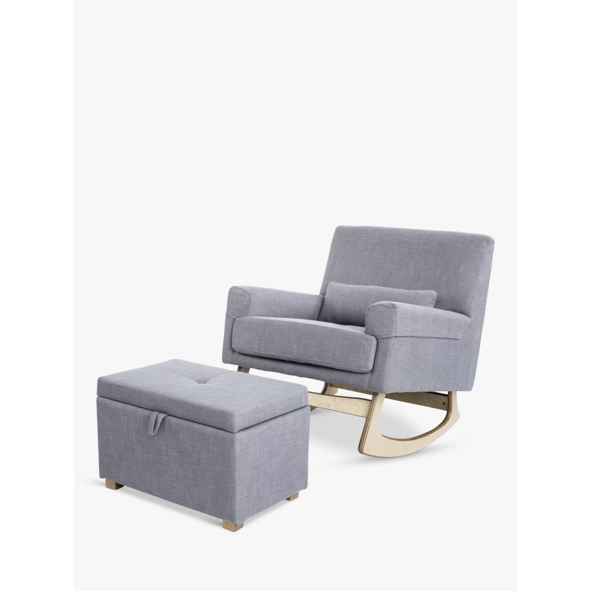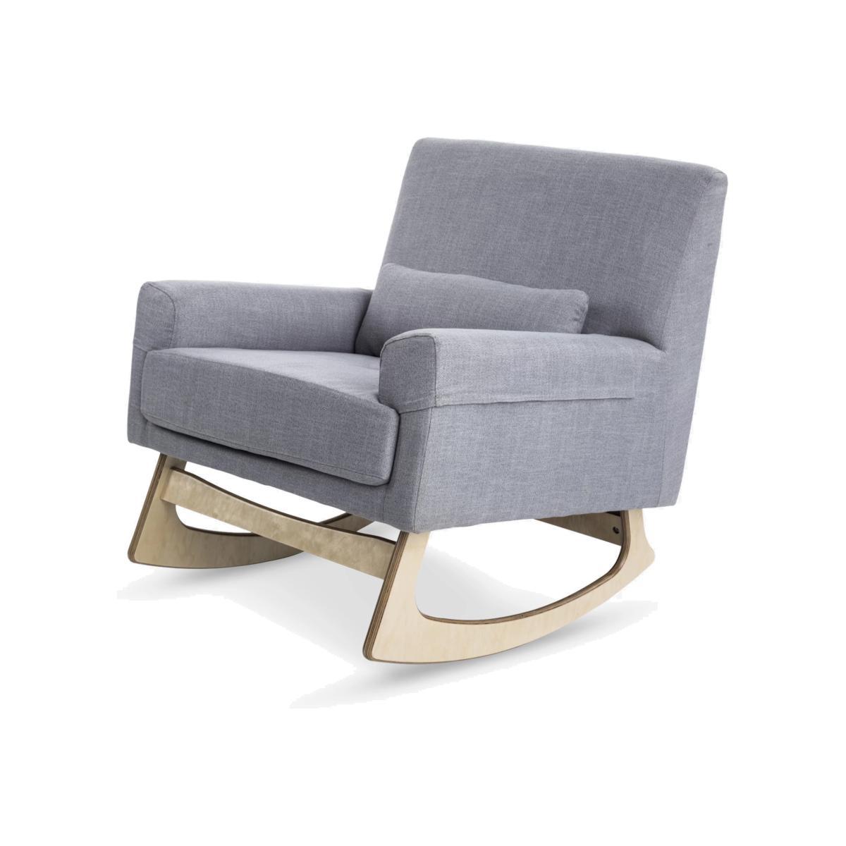 Beautifully contoured with classic styling, the Serena Nursing Rocking Chair from Gaia Baby will add a contemporary feel to any nursery or living space. Ergonomically designed to provide optimum comfort as a nursing/feeding chair, it has an extra lumbar cushion, padded armrests and is generously sized to accommodate a parent and child for bedtime stories as they grow. The softly contoured legs are made from laminated birch-wood veneer using a special technique during the manufacturing process to give extra strength and avoid splintering for a smooth and soothing rocking motion. Good to know: Finely upholstered in durable woven polyester, the armrests are removable and washable.