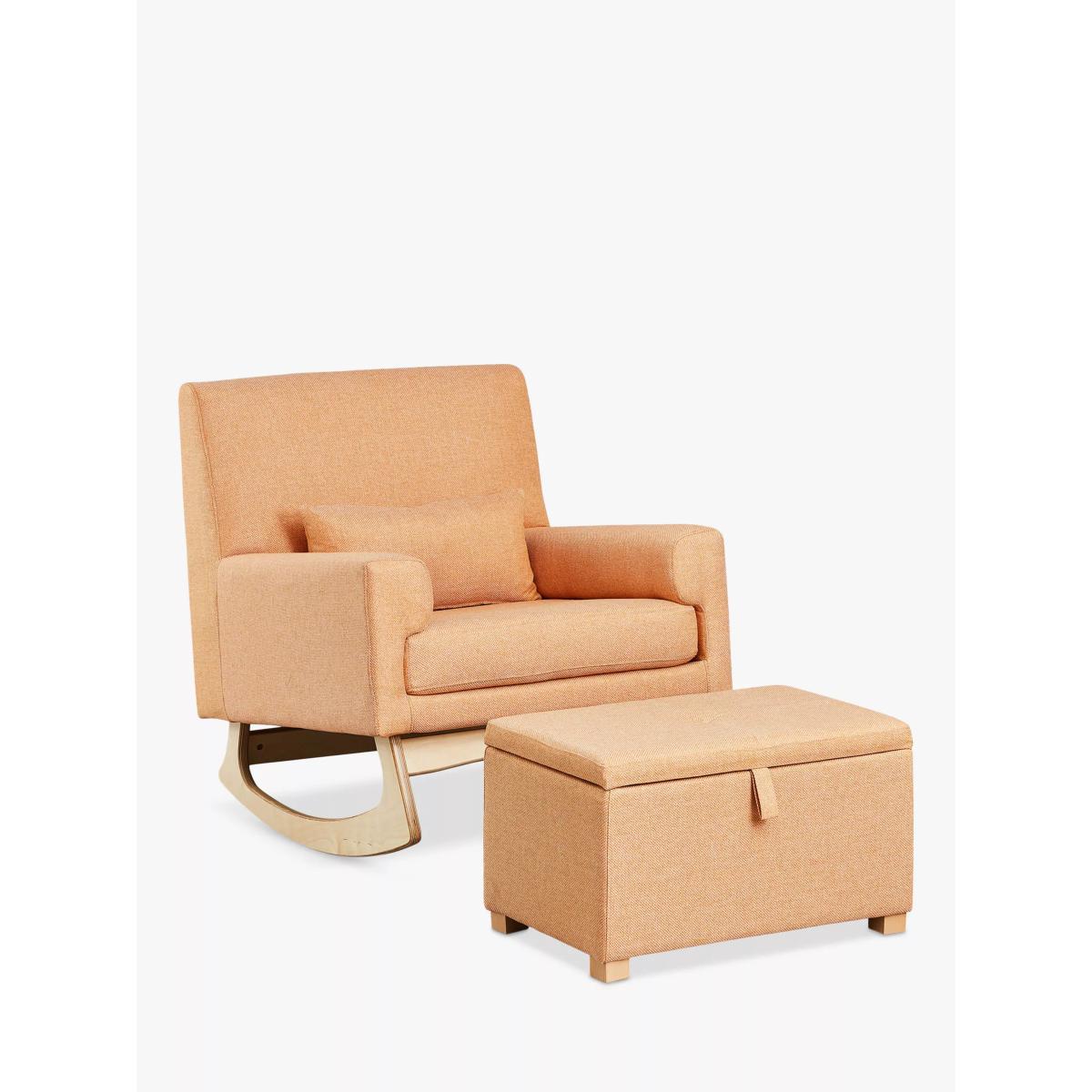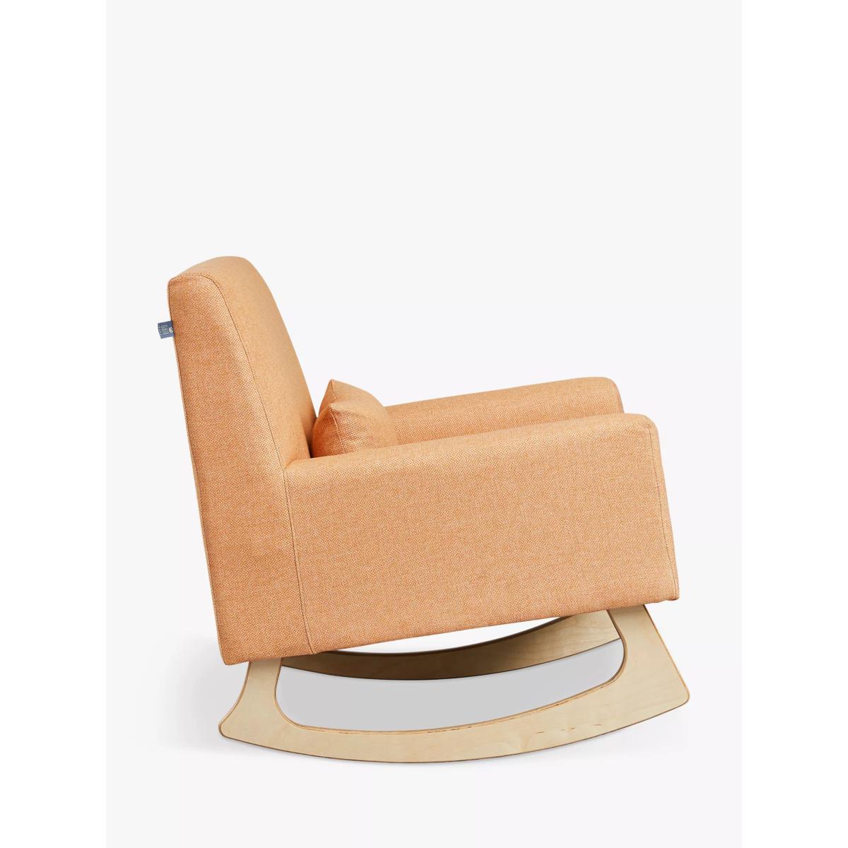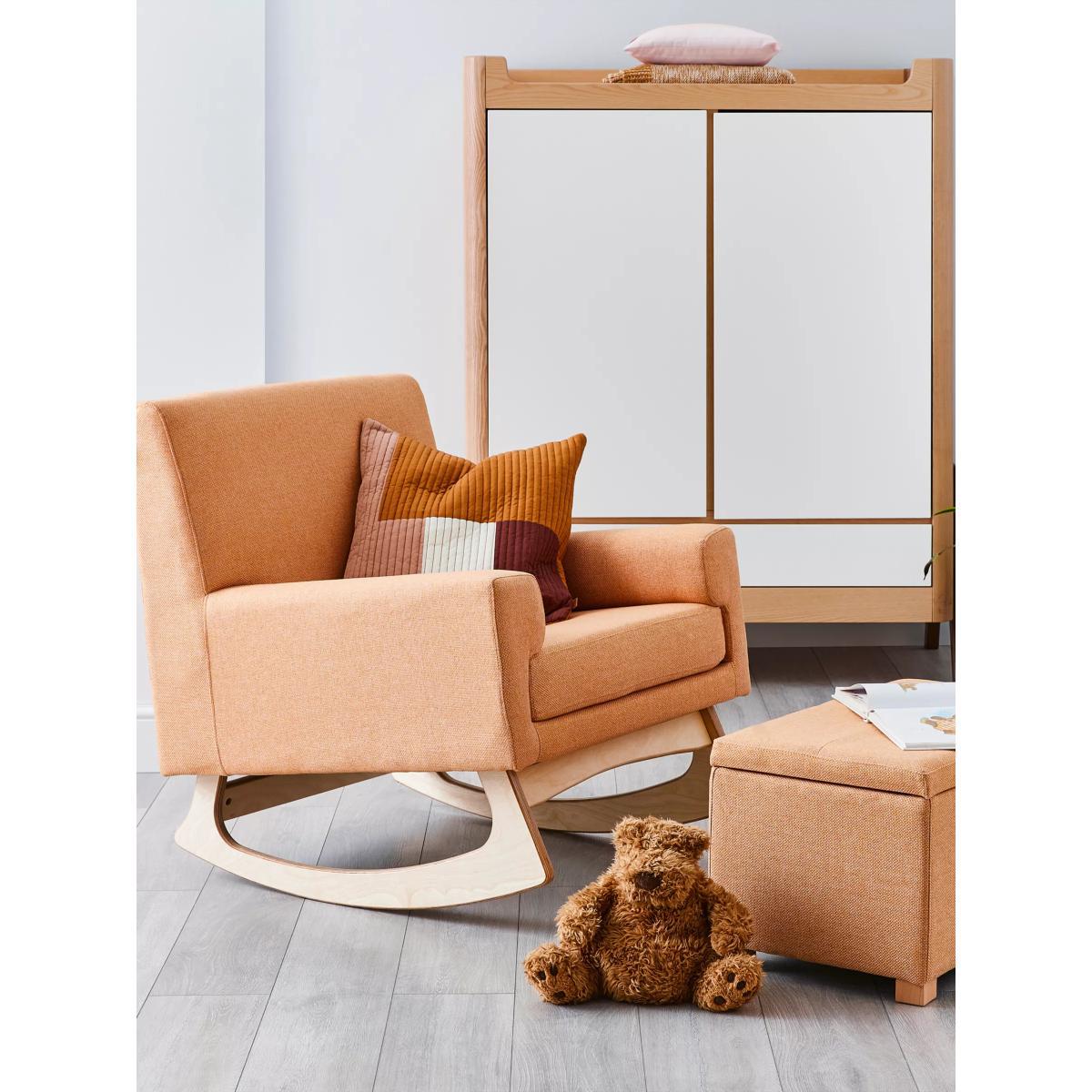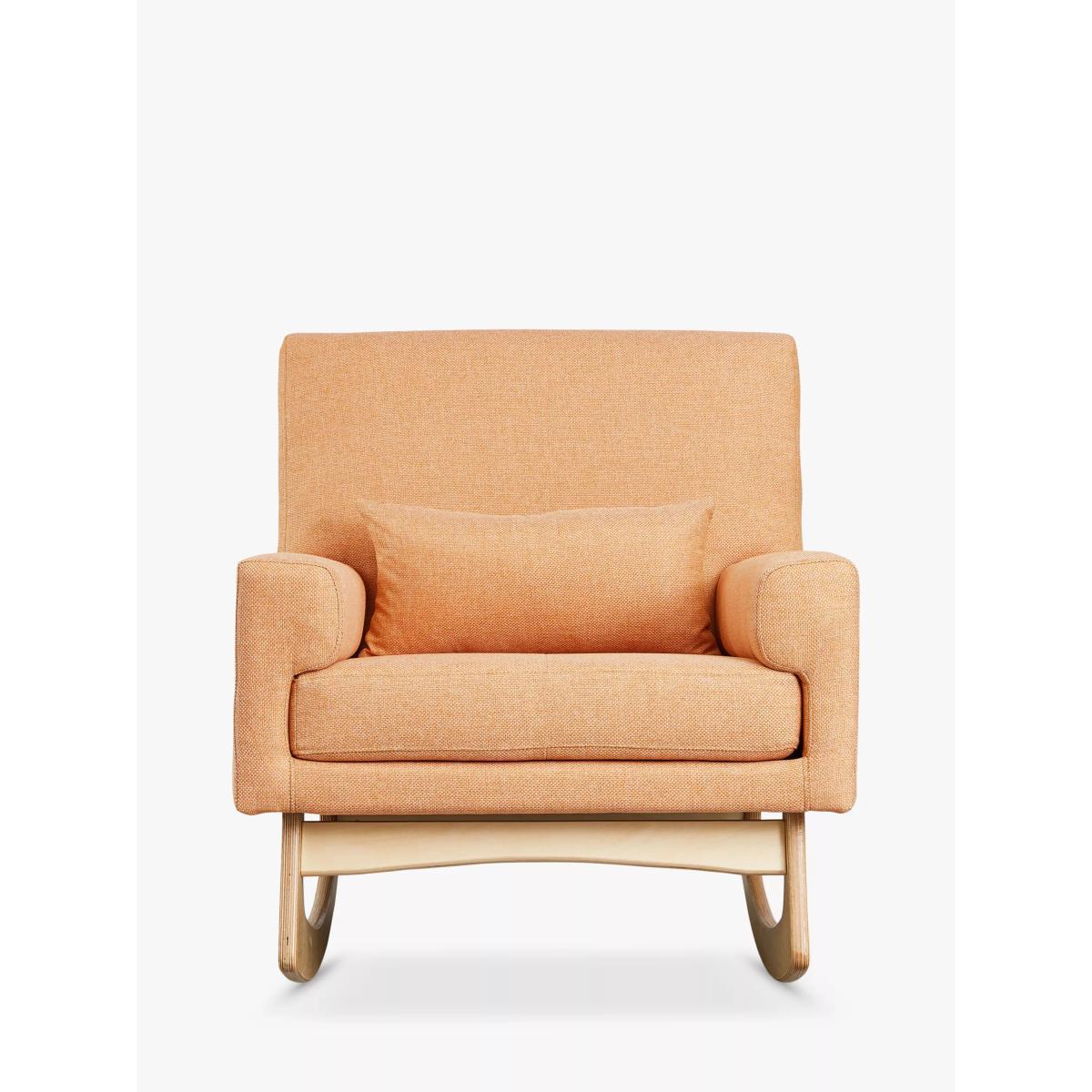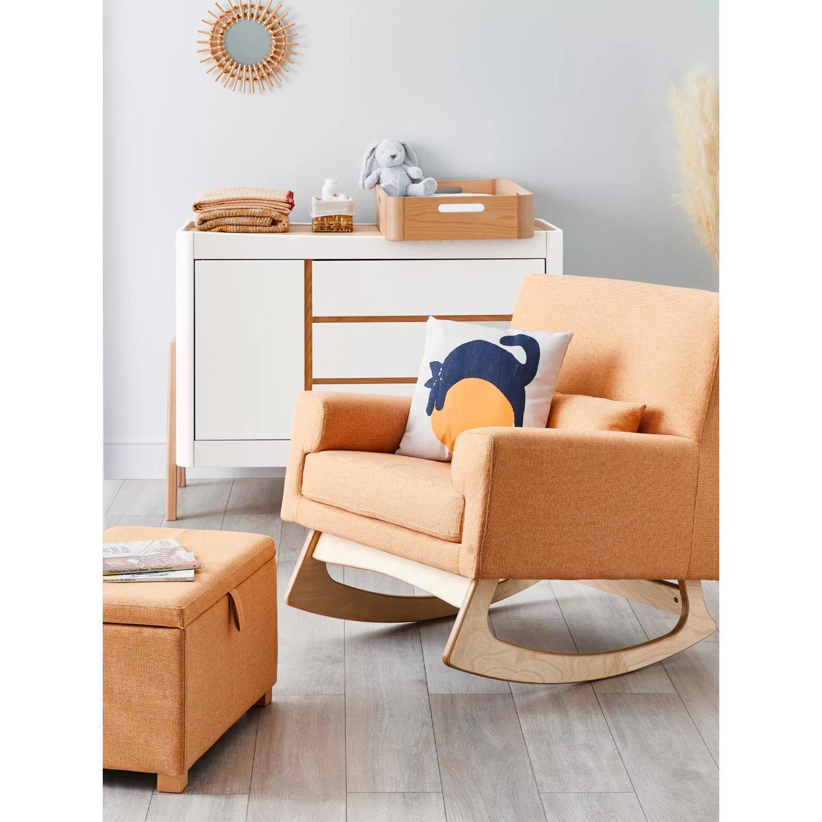 Beautifully contoured with classic styling, the Serena Nursing Rocking Chair from Gaia Baby will add a contemporary feel to any nursery or living space. Ergonomically designed to provide optimum comfort as a nursing/feeding chair, it has an extra lumbar cushion and padded armrests and is generously sized to accommodate a parent and child for bedtime stories as they grow. Gently contoured solid wood legs incorporate an anti-tipping design to allow for hands-free sitting. It also comes finely upholstered with removable and washable armrests in durable woven polyester.