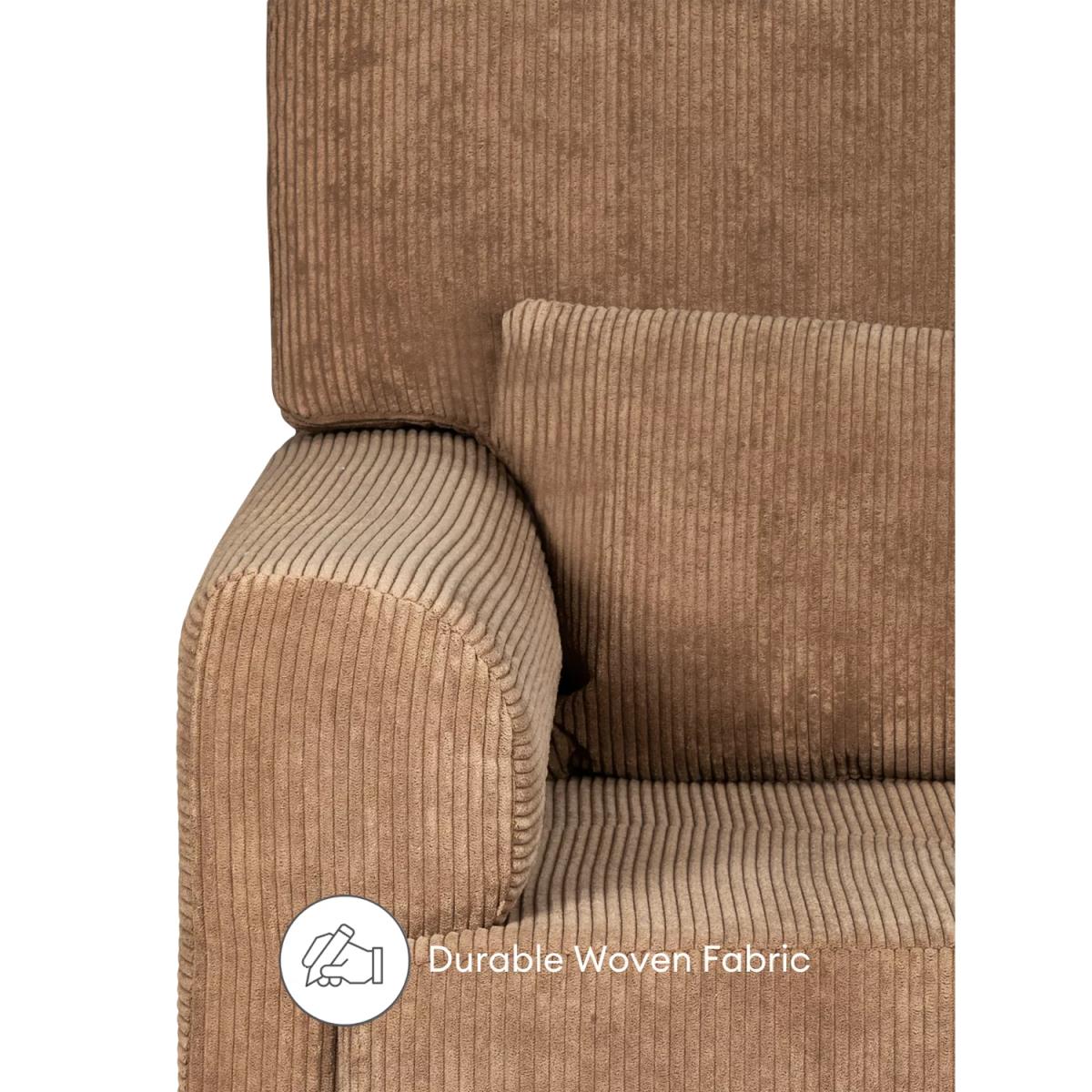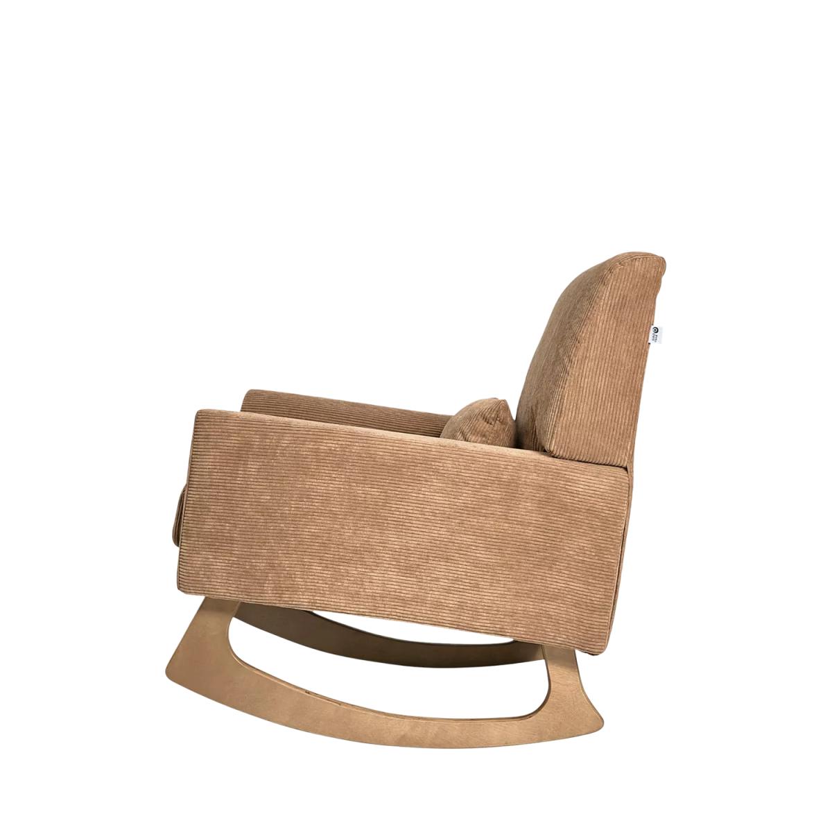 Timeless comfort meets catwalk style with the new Serena Rocking Chair in Corduroy. Corduroy, the darling of contemporary interiors, brings its unique textural charm and rich aesthetic to your home. Known for its luxurious feel and versatility, corduroy has emerged as a design favourite, effortlessly elevating living spaces with a subtle nod to retro sophistication. The Serena rocking chair combines clean lines and ergonomic design, ensuring both style and relaxation. Whether placed in your nursery or as a standout piece in your living room, its tactile fabric and fashion-forward appeal make it a must-have for design enthusiasts. Choose from the warm cozy tones of Caramel or the neutral versatility of Ecru paired with a classic Oak finish leg. Ergonomic arm height and extra lumbar support offer extra comfort at feeding time. Extra wide seat leaves plenty of space for your toddler to cosy up for bedtime stories. Anti-tipping design, allows you to sit down and stand up handsfree.