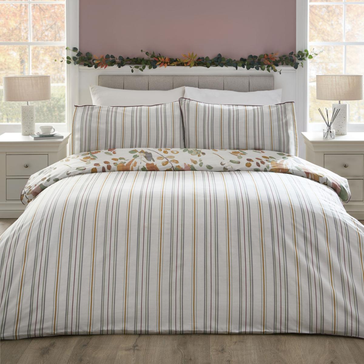 Exclusive to the Divante collection at The Range, this Gaia Botanical Duvet Cover and Pillowcase Set is the perfect addition to your home this fall. Boating autumnal tones of green, orange and red, this duvet set is reversible, providing you with variety. One side features an abstract botanical design, while the other has a classic stripe pattern. This duvet set is finished with a sophisticated piped edge and is the perfect way to elevate your home for the season.