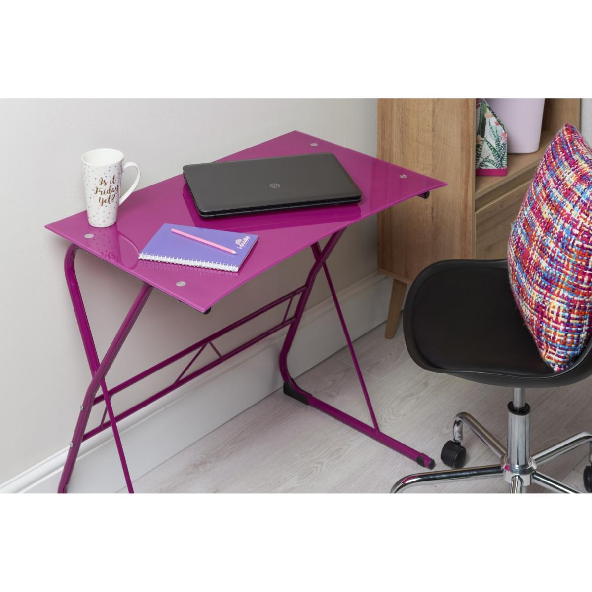 This compact and sturdy Galactic Desk will add a touch of 70s chic to your room with its simple steel design in one of two vibrant colours. With a quality tempered glass table top, this desk is perfect for creating a calming study environment in your room without compromising on space and light.