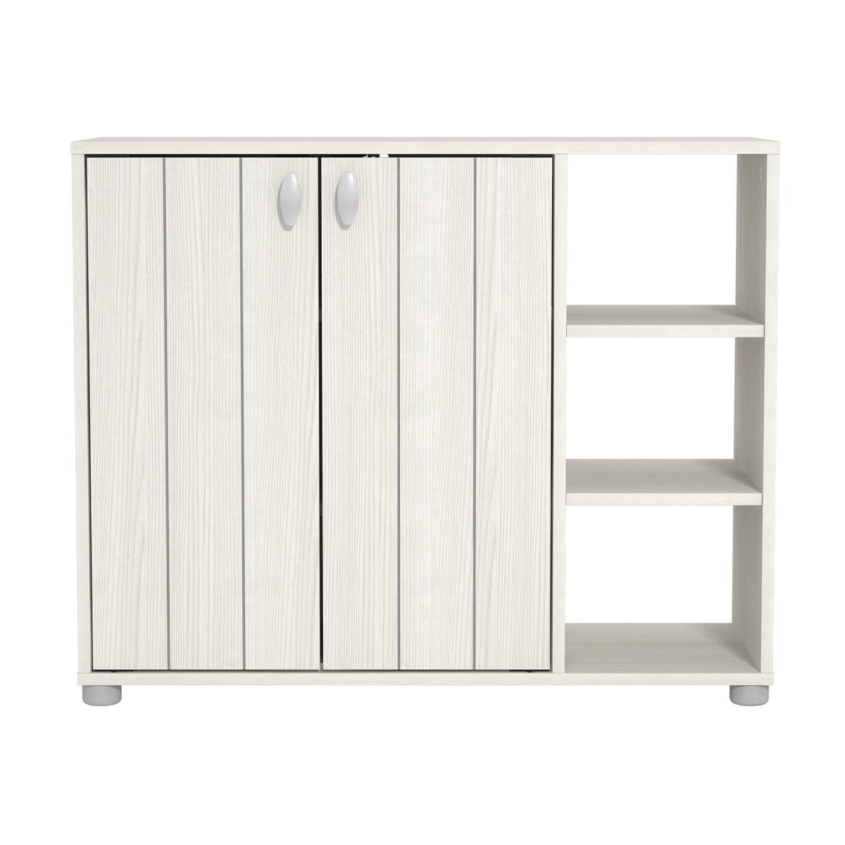 The Hansel 2 Door Storage Cabinet offers a stylish and practical way to keep your entryway or living area neat and organized. Featuring two closed compartments with multiple storage tiers inside, it can accommodate up to 12 pairs of shoes of various sizes, ideal for households that value both function and tidiness. Crafted from durable engineered wood, the cabinet provides reliable strength and everyday resilience, while its modern polished finish adds a clean, contemporary look that blends well with any home. Whether placed in a hallway, entryway, porch, or bedroom, this unit complements your space with a subtle and refined presence. The elevated base design not only enhances airflow but also allows easy cleaning underneath. Ergonomic grey handles offer a smooth grip and reduce the risk of scratches or discomfort during use.