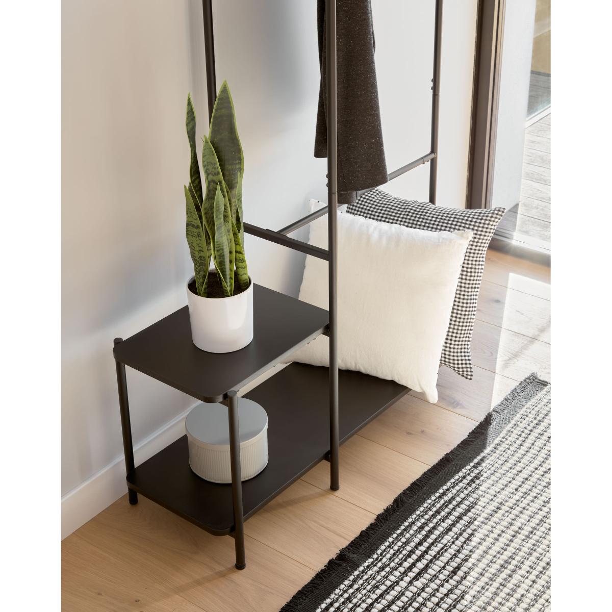 I’m a fan of this black rail and bench unit for its clean lines and durable melamine shelf - it feels light in a hallway or bedroom without sacrificing storage. It sits well in modern-minimal, Scandinavian or industrial-style spaces where you want an organised, on-display look. Styling tip: hang your most-worn jackets on the top bar and use the lower bar for scarves or lighter layers. On the bench, add woven baskets or folded knits in a limited colour palette for a streamlined feel. A slim tray for keys or jewellery and a small plant will soften the metal frame without cluttering it.