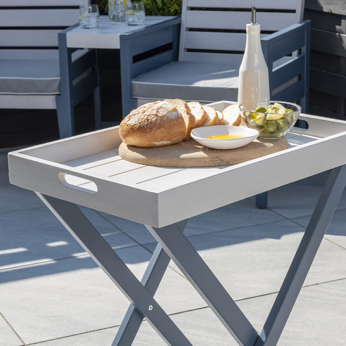 The Galaxy Garden Butler Table is a versatile piece perfect for both contemporary and coastal garden settings. I love its clean, minimalist design and neutral colour that allows it to blend seamlessly with a variety of outdoor styles. It works well as a practical side table for al fresco dining or relaxing in the garden, and its foldable design offers easy storage when not in use. For styling tips, consider pairing it with lightweight, casual tableware and textured textiles like woven placemats or linen napkins to create a relaxed yet polished look. It’s a great addition to a modern patio or even a boho-inspired garden lounge area.