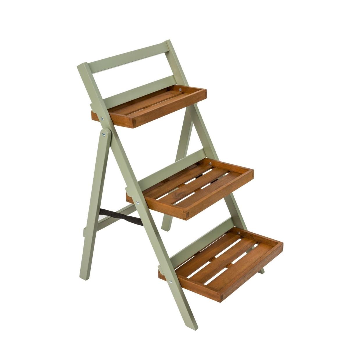 A stunning contemporary contrasting green and textured teak folding pot shelf. This piece combines practicality and understated vintage luxury style.
