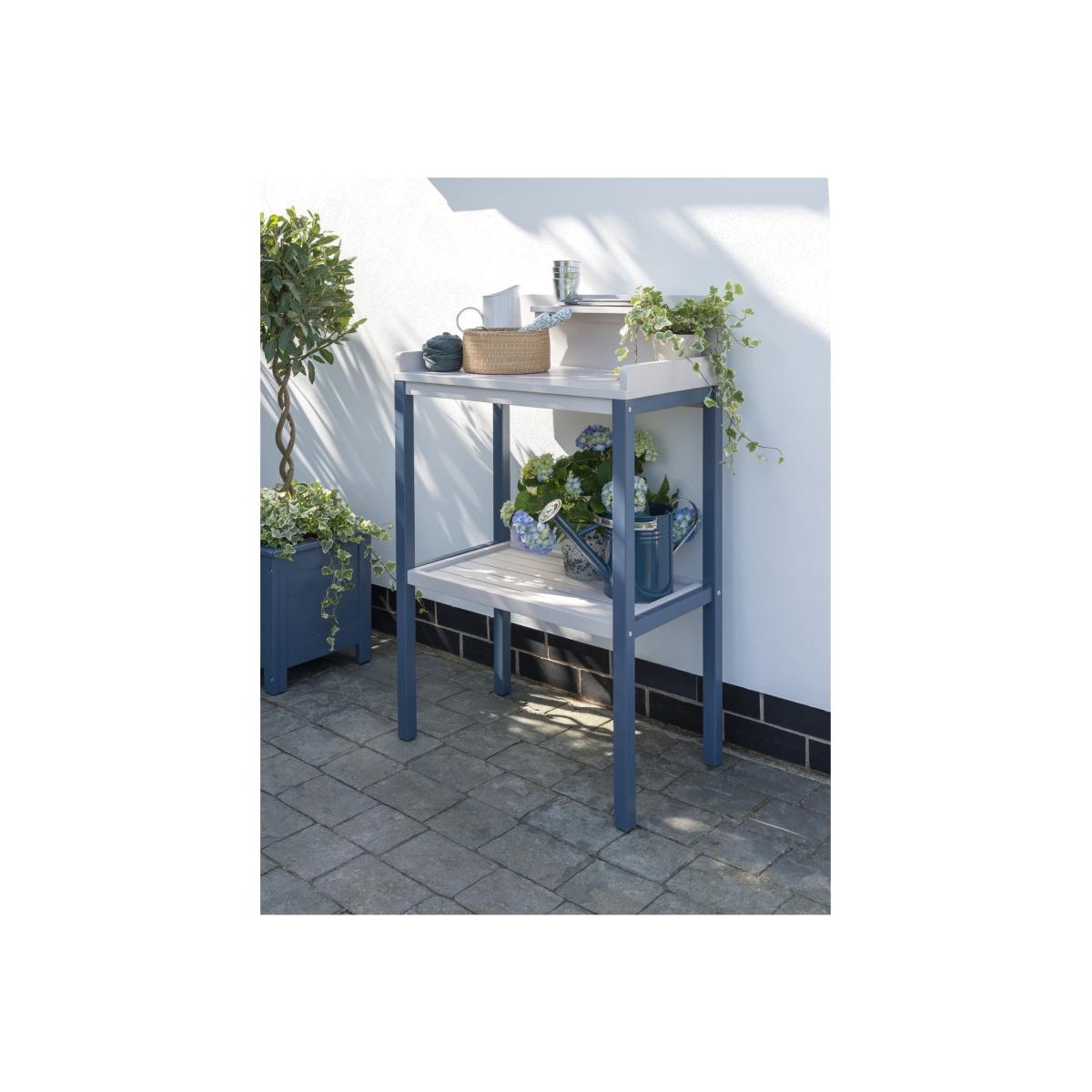 I love the galaxy garden potting table for its versatile colour palette and functional design, making it a practical addition to a range of garden styles. Its grey and blue tones lend themselves well to modern, coastal, or cottage garden aesthetics. When styling, consider pairing it with lush greenery or pastel-toned accessories to enhance its calming vibe. Practical tips include using the shelves for organised storage of tools and pots, keeping the workspace tidy and inviting. It also works beautifully as a feature piece in a compact outdoor corner or as part of a larger planting scheme, adding both utility and visual interest to your garden setup.