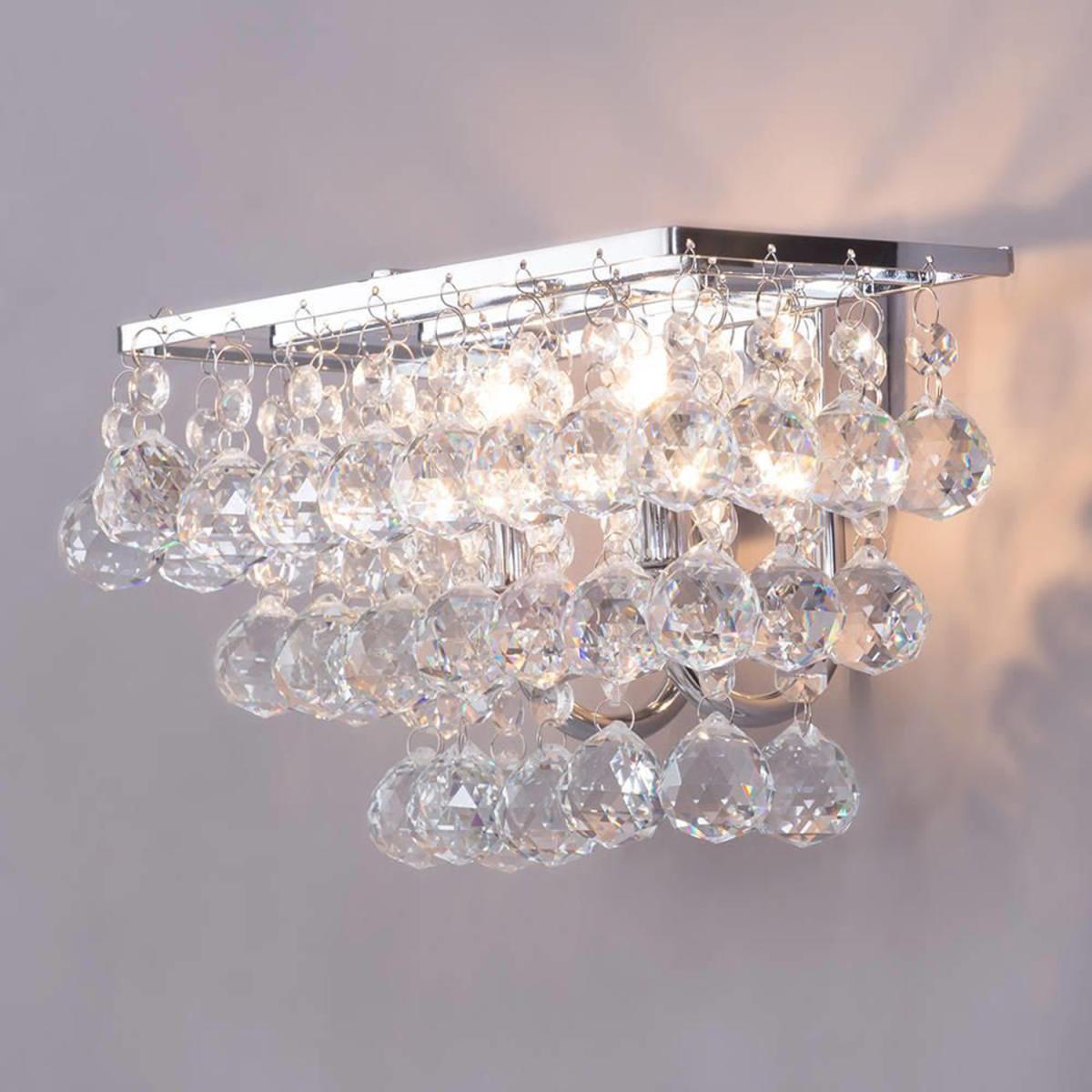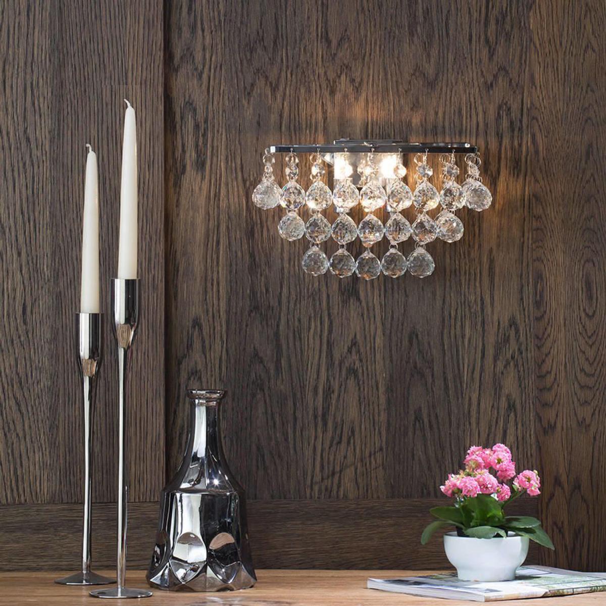 Opulently light your reception rooms or bedroom with the Galaxy K9 Crystal Wall Light in Chrome. The 2 light of this wall lamp makes for add a softer lighting layer perfect for winding down after a long day. The K9 crystals of this wall light add luxury to any room of the house.