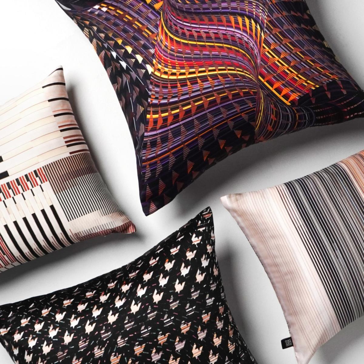 From our ‘Phantasm’ collection, which takes you on a whirlwind adventure across mesmerising landscapes. The fragments in the milky way pass through stardust, half moons and golden suns, the popping colours turning the clashing pattern into a shimmering kaleidoscopic galaxy.