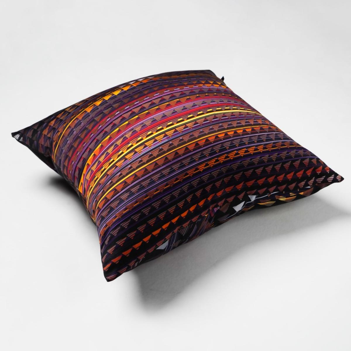 I really like the galaxy square cushion - it’s a bold statement piece that works beautifully in both contemporary and eclectic interiors. Its vivid, geometric pattern and rich colour palette make it ideal for adding a pop of interest to neutral sofas or armchairs. For practical styling, pair it with other textured textiles like knits or velvet throws to create a layered, inviting look. It's also versatile enough to work well in a bedroom as an accent pillow or in a reading nook to inject a splash of colour and pattern, making spaces feel more curated and dynamic.