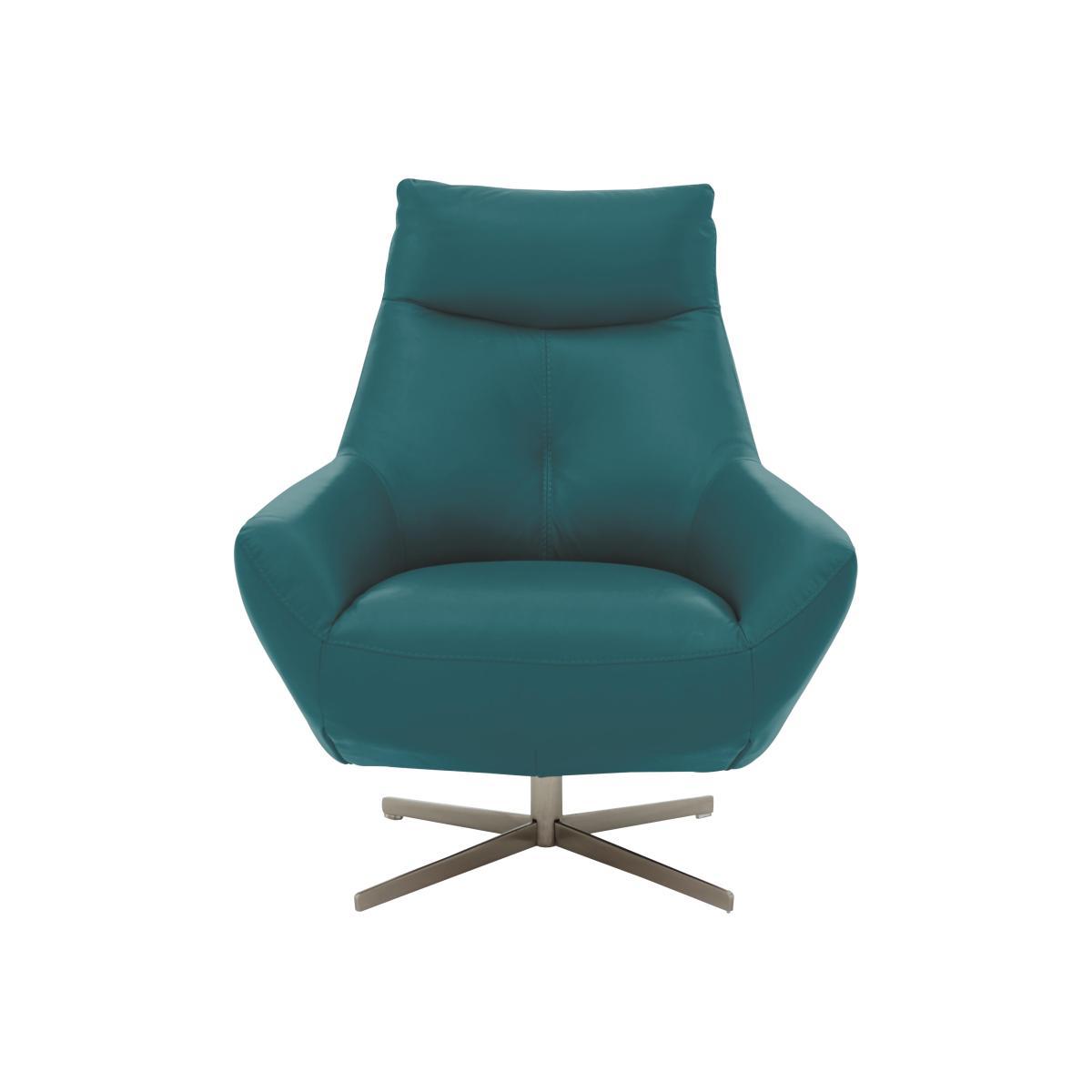 I love this swivel chair for its modern yet inviting look; the teal leather adds a touch of colour that can brighten up a neutral space or complement richer tones. Its contemporary design works well in both minimalist and eclectic interiors, serving as a statement piece without overpowering the room. Practical styling tips include pairing it with a simple side table and a cosy throw for comfort, or positioning it as a focal point in a reading nook with a plush rug and good lighting. The swivel function also makes it highly functional for social spaces or home offices, offering flexibility and style in one sleek package.