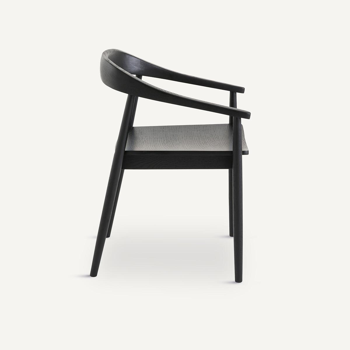 Made from certified materials, the Galb table armchair has a refined style and comfortable curved lines. Galb seats are available in several finishes, here, a particularly elegant matte black version. A design by AMPM.Product Details • FSC® painted solid oak structure • Seat in FSC® painted oak veneered rubberwood plywood • Matte polyurethane finish. Dimensions • Width: 58cm • Height: 79cm • Depth: 58cm • Seat height: 46cm • Armrest height: 60cmDelivery:. Sold pre-assembled. Note! Please check that all access points are large enough to accommodate your delivery (doors, stairs, lifts). • WOOD FROM SUSTAINABLY MANAGED FORESTS. FSC® certified wood comes from forests that are environmentally, socially and economically well managed. Parcel dimensions and weight • 1 parcel • L61 x H83 x D58.5cm, 13.5kg
