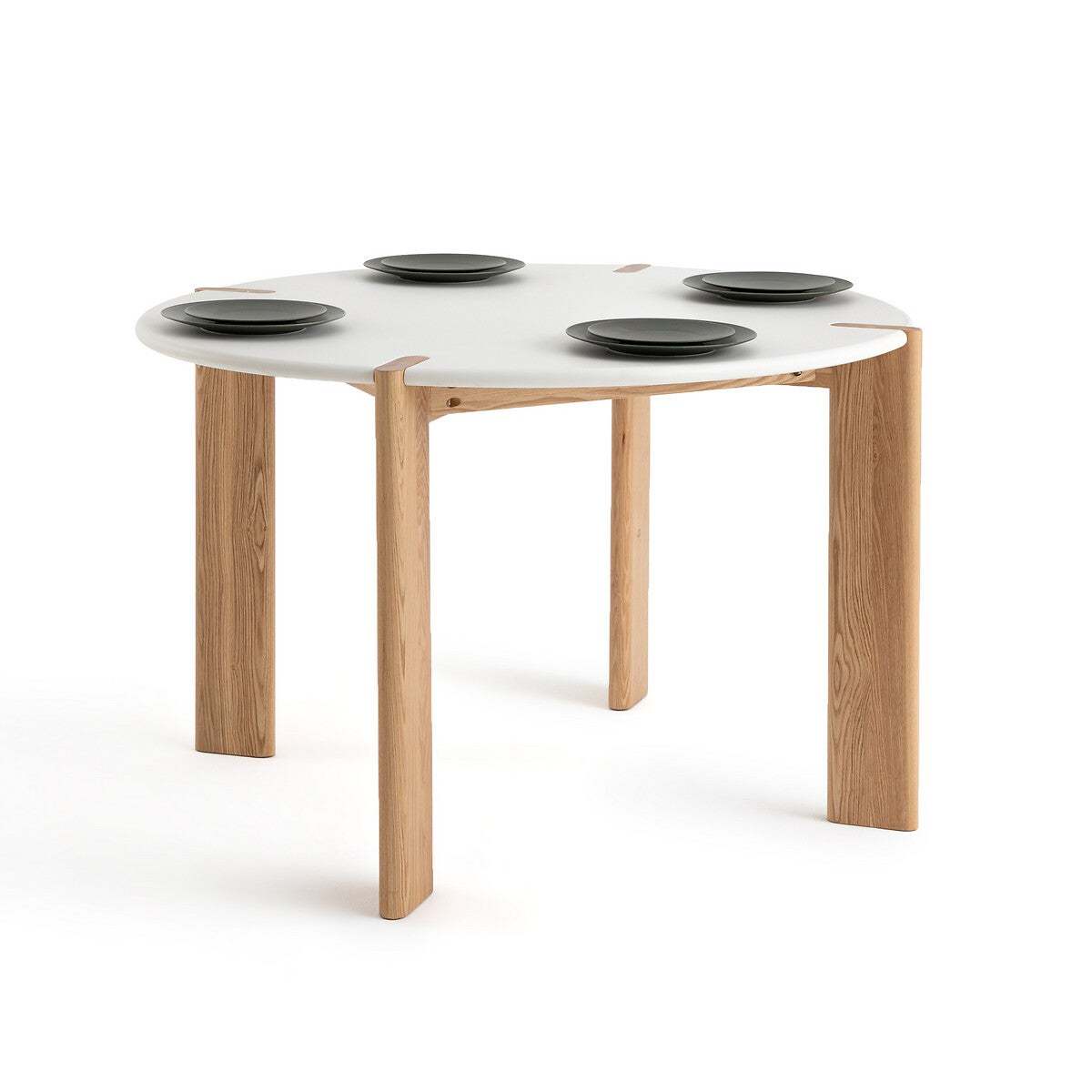 I love this dining table for its clean, modern aesthetic with a subtle touch of warmth from the wooden legs, making it a versatile piece. It works particularly well in contemporary and Scandinavian-inspired interiors, where simplicity and natural materials are key. Styling tips include pairing it with minimalist chairs or a mix of textured fabrics in neutral tones to keep the look fresh and relaxed. For a more personalised touch, add a centrepiece or colourful placemats to create visual interest without overwhelming the space. Its straightforward design also allows it to be adapted easily for both casual family meals and more formal dinners.