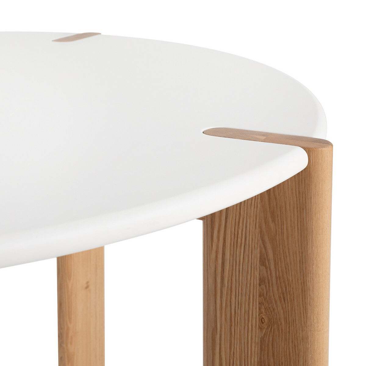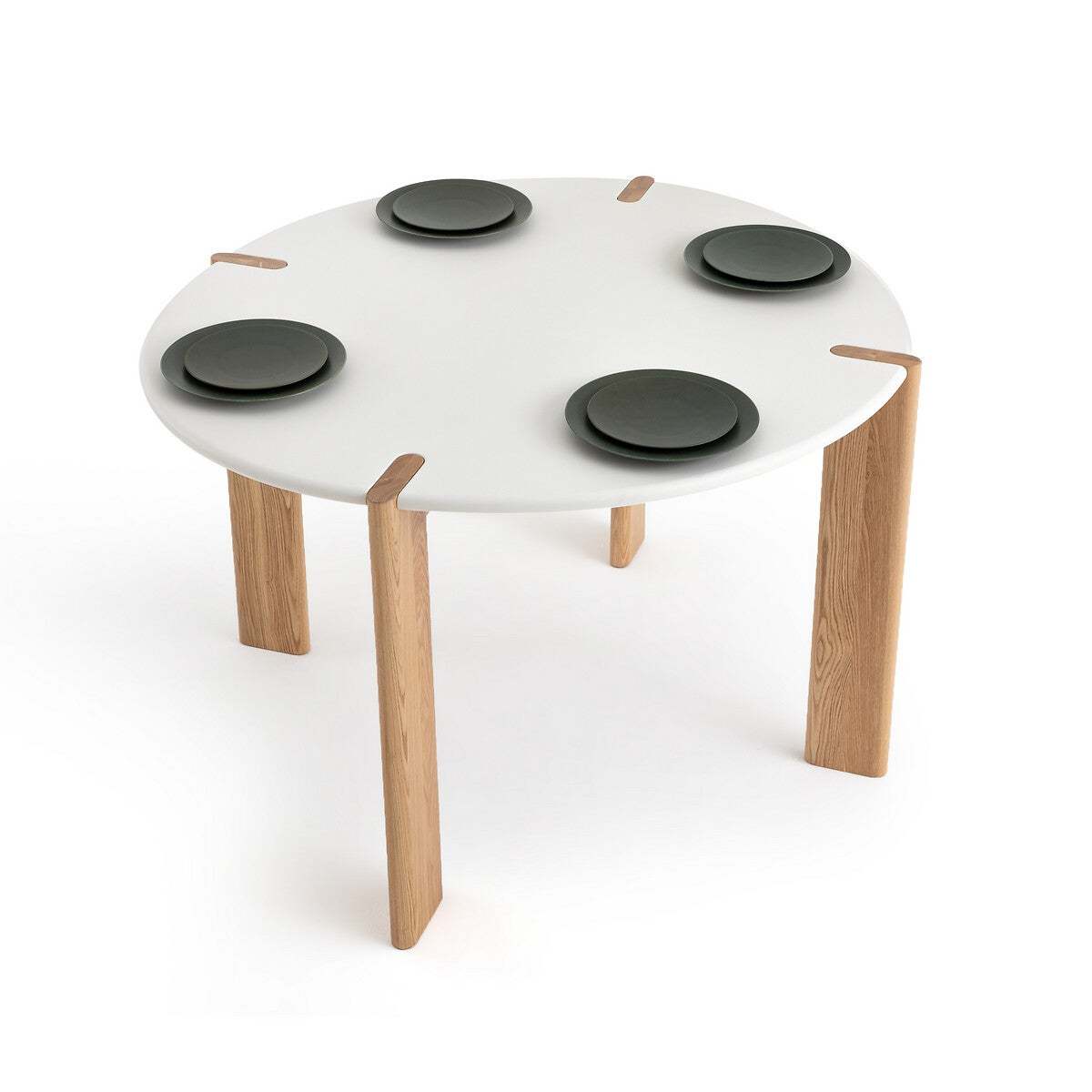 A dining table with soft and elegant shapes crafted from beech and lacquer.