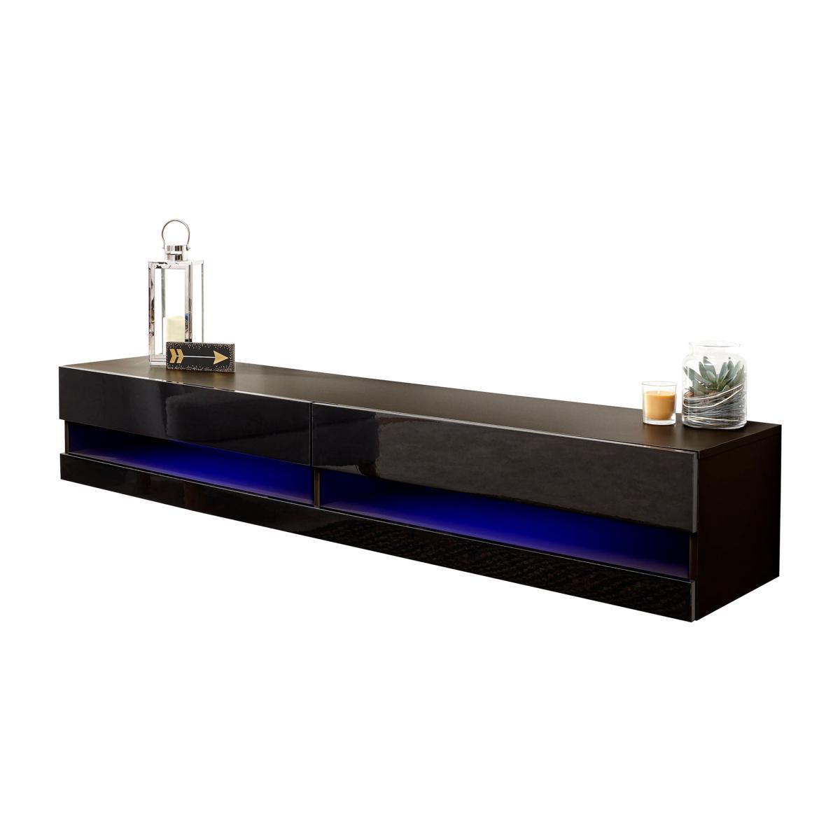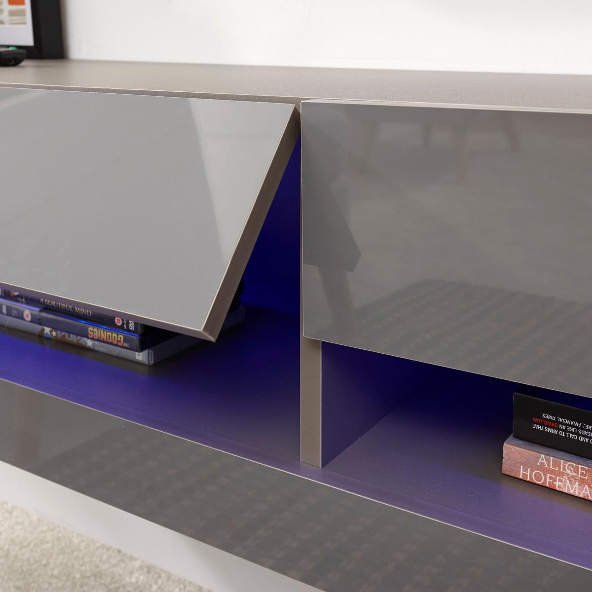 Crafted with a contemporary, minimalist design, the Galicia 150cm wall tv unit would be a great addition to any modern living room and is available in a choice of black, grey or white colourways. This self-assembly stand features two spacious open shelves, with two lift-up doors to allow easy access whilst keeping the design low-profile when closed. The TV unit also comes with a hidden AV access point allows cables to be hidden out of sight and battery-operated LED lights, perfect for illuminating your consoles and devices beneath or to provide mood lighting. Please note, unfortunately we cannot deliver this item to the Channel Islands.
