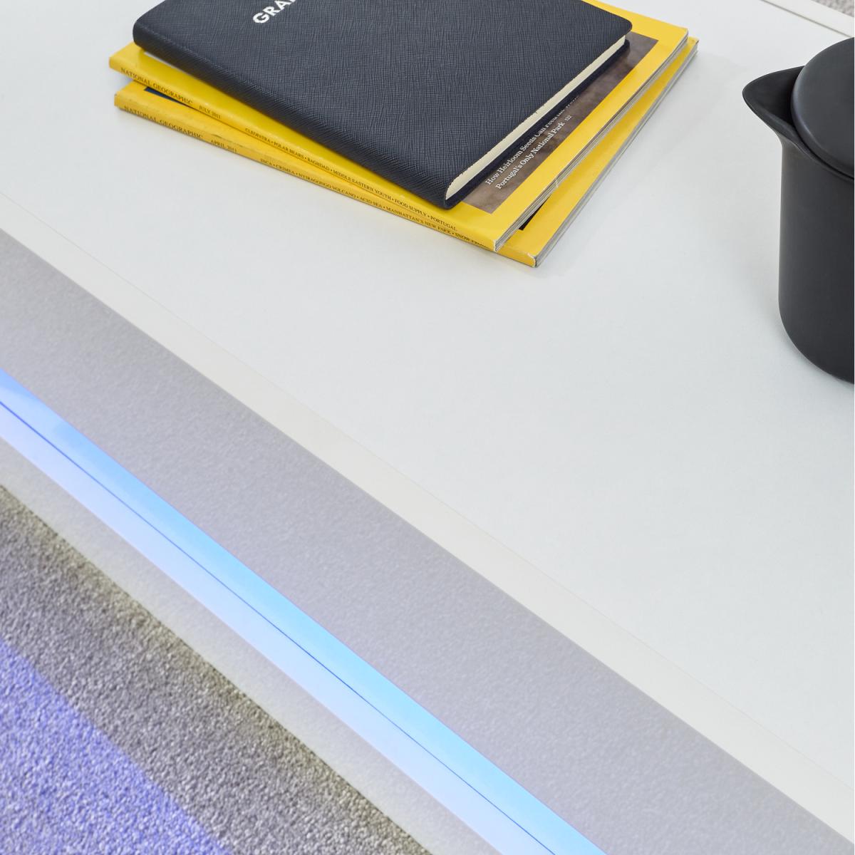 No living room would be complete without a coffee table, but if you prefer your furniture to be understated, you might be struggling to find a fuss-free fit. Enter Galicia. The minimalist cuboid construction offers pared-back elegance that's hard to fault. The lift-up panels to both sides offer easy access to a generous central storage space that benefits from a cool, battery-powered LED downlight. The slender cut-out slot feature adds to the contemporary appeal. A statement piece that will continue to impress.