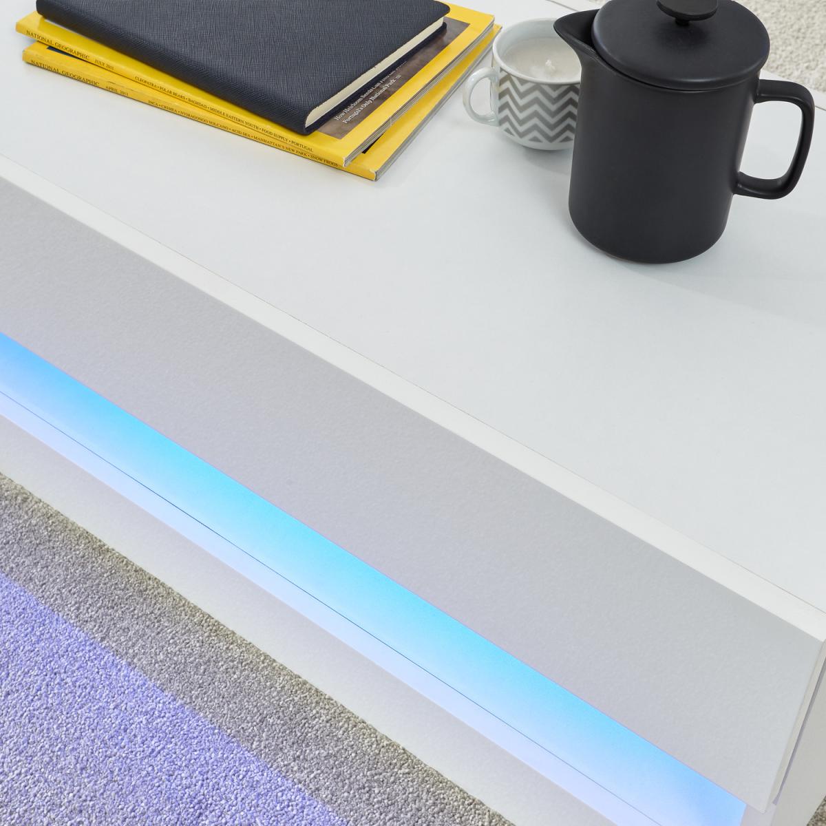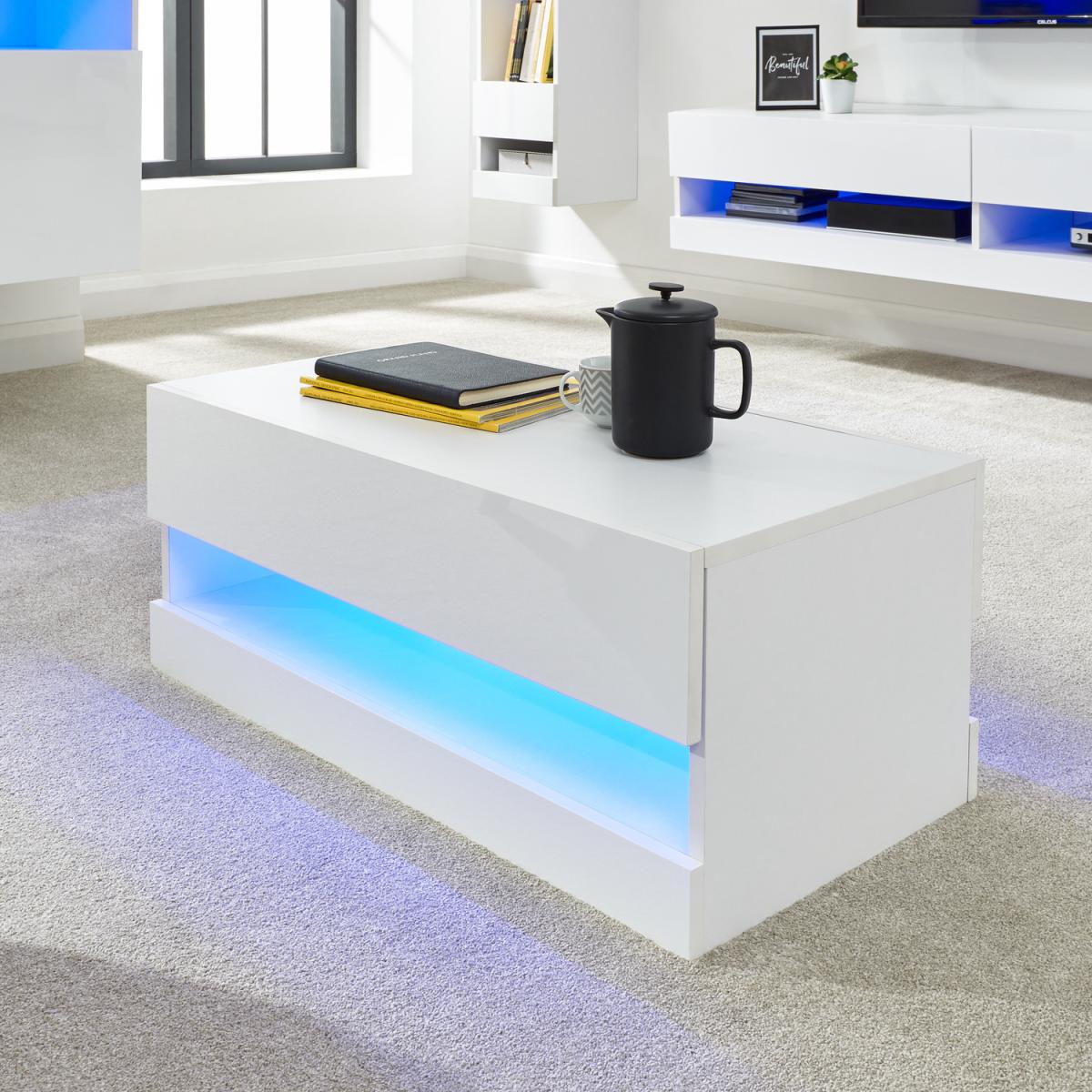 I’m a fan of this white coffee table for its crisp, minimalist silhouette and handy hidden drawer - it keeps remotes and coasters out of sight while the subtle LED shelf adds just the right evening glow. It works brilliantly in contemporary and Scandinavian-style living rooms, especially against neutral rugs or timber floors. Styling-wise, keep tabletop accessories to a minimum: a small stack of design books, a textured ceramic vase or a black metal tray will play off the gloss finish without overcrowding it. Tuck in a low-profile plant or a pair of matching candles on the LED shelf to highlight the lighting and maintain that uncluttered, modern feel.