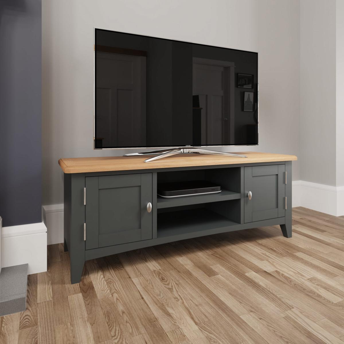 I love this tall and versatile TV unit because its clean lines and neutral grey finish make it a functional yet stylish addition to a range of interiors. It works particularly well in contemporary, Scandinavian, and even rustic settings thanks to its straightforward design. Practical styling tips include layering your media devices within the open shelf, adding some decorative details like vases or books on top, and using colourful accessories to bring in personality. Its size offers ample storage without overwhelming the space, making it ideal for both spacious lounges and cosy media corners.