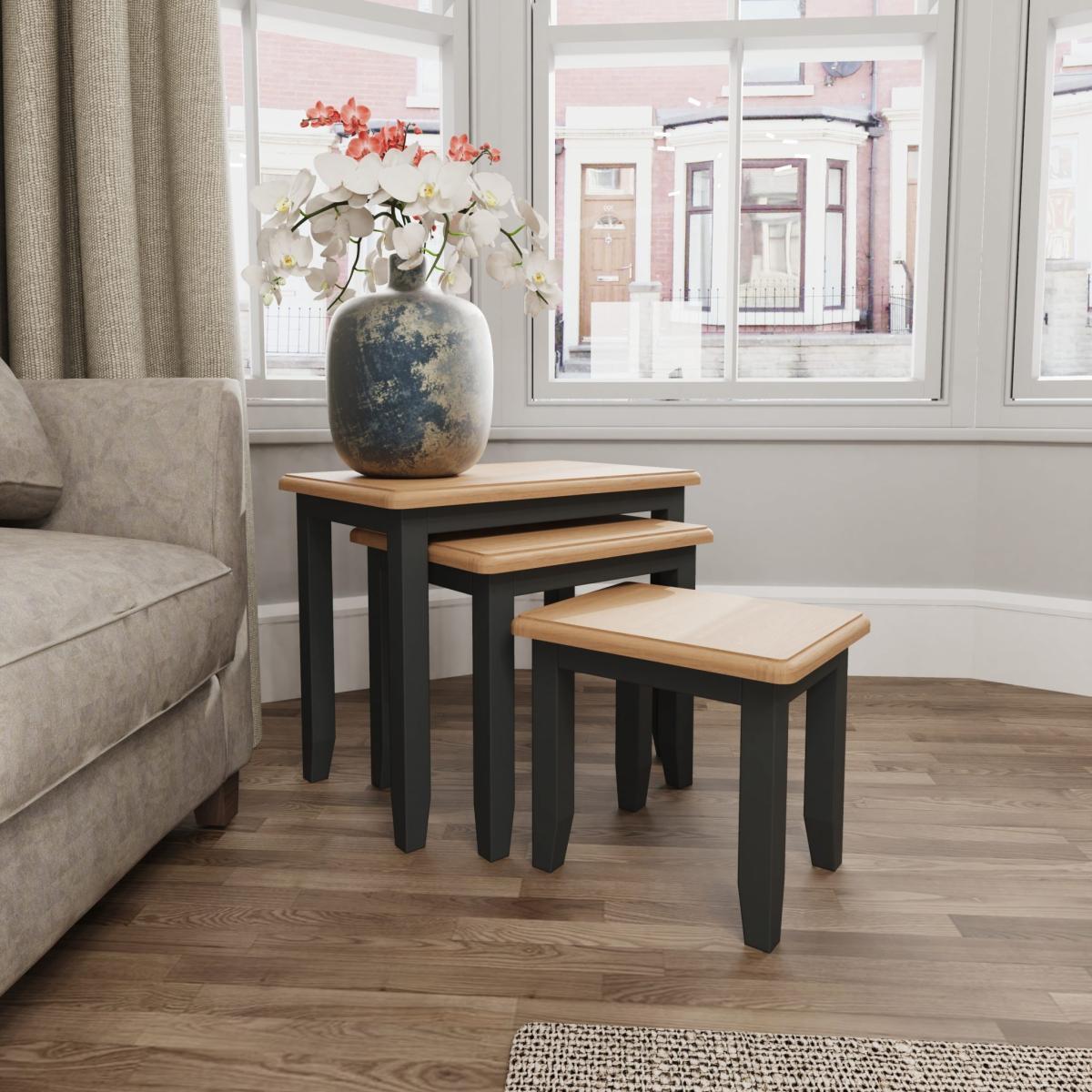 The Galileo Oak Nest of 3 Tables offers a practical yet stylish solution for compact spaces. I love how versatile and easy to incorporate into various interiors - from modern minimalist to cosy traditional settings. The grey finish adds a contemporary touch, making it suitable for neutral palettes, but it also works well paired with textured fabrics or colourful accessories to add warmth. Practical styling tips include stacking the tables to save space or separating them around a sofa or armchair for extra surface area. They’re perfect for serving, displaying plants or lamps, and can easily be moved when entertaining or reconfiguring the room.