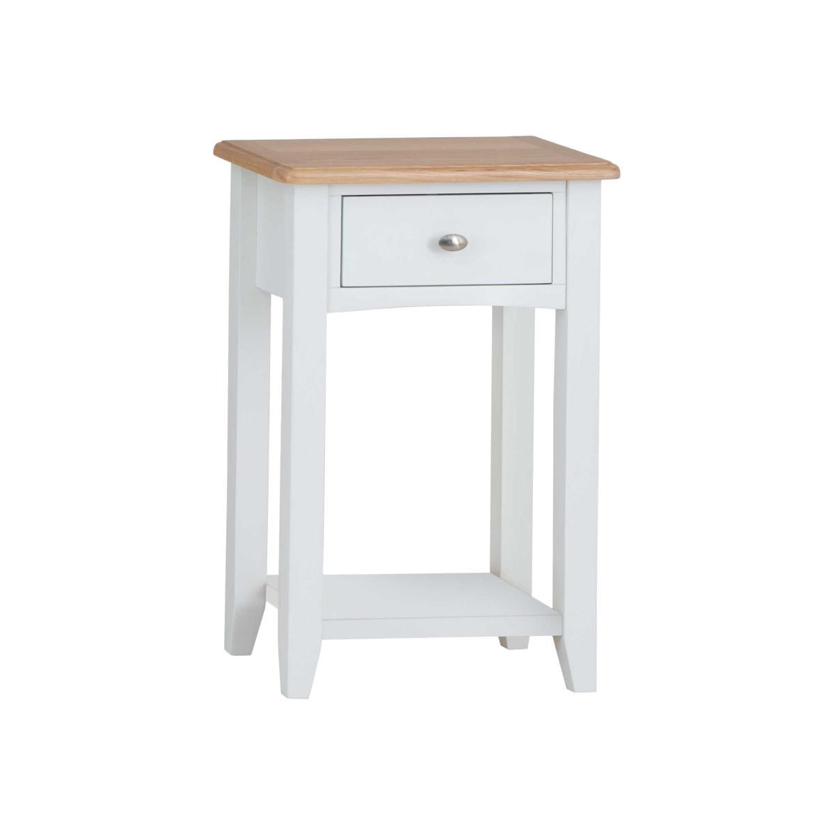 I love this little side table for its versatility and fresh look. The mix of the white painted finish with a natural oak top makes it adaptable to both modern and classic interiors. It works particularly well in bright, minimalist spaces or coastal styles where a light, airy feel is desired. Practical styling tips include using it as a bedside table paired with neutral bedding, or as a handy spot for a table lamp, a favourite book, or a decorative plant. Its drawer offers useful storage for small essentials, keeping surfaces tidy. Keep the décor understated to let the natural oak top and clean lines shine, or add colourful accessories for a pop of personality.