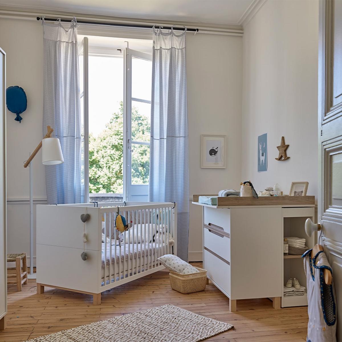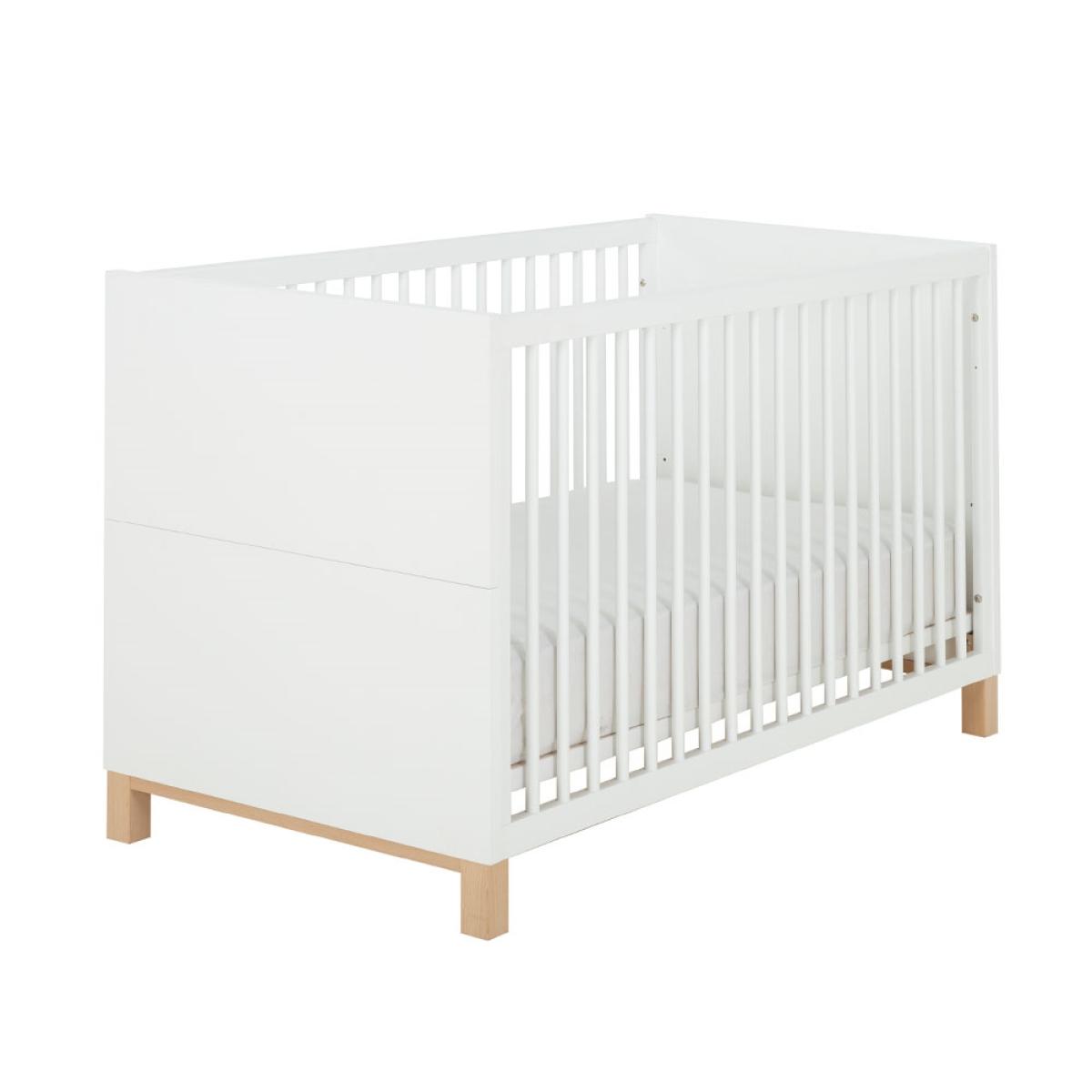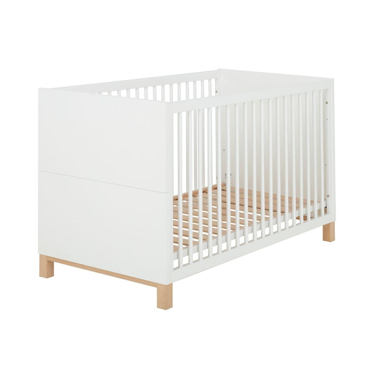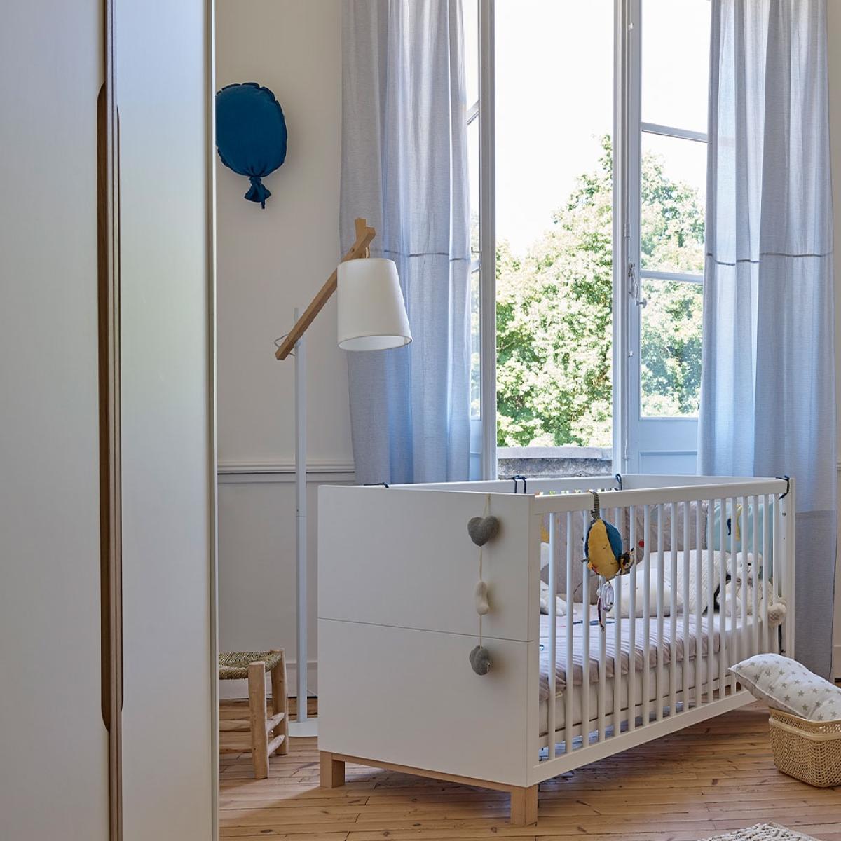 Lovingly crafted from beech wood, and materials sourced from sustainably managed forests - the Galipette Celeste Cot Bed would be a wonderful first bed for your newborn. Suitable from birth, the adaptable and convertible design can be used up until the age of seven - with the optional conversion kit! With a height adjustable bed base, when your baby is first born, set their mattress at the higher level to reduce bending and straining. Then lower the mattress to keep them safe as they grow. Once the cot stage has been outgrown, add the optional conversion kit to their setup and transform the wooden frame into a toddler bed. Finished in a gentle snow white with beech wood legs - pair the Celeste cot bed with the matching storage from the collection to create yours and your little one's dream nursery!.