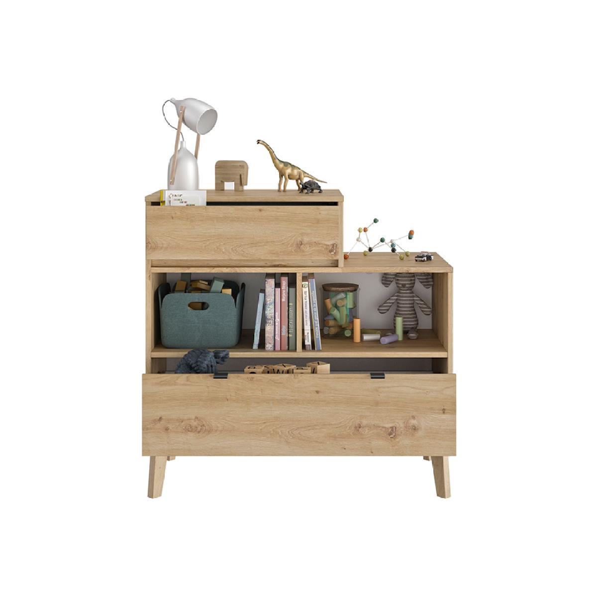 I love this little chest for its clean lines and versatile appearance, making it suitable for a range of interiors from modern to Scandinavian or even eclectic spaces. Its natural wood finish brings warmth and texture, which works particularly well in nurseries, guest rooms, or as a handy piece in a child's bedroom. Practical styling tips include pairing it with soft textiles or colourful accessories to add personality, or keeping its surface uncluttered for a minimalist look. The two drawers are perfect for organising smaller items, while the open shelf can be styled with books, plants, or decorative bits for a personalised touch.
