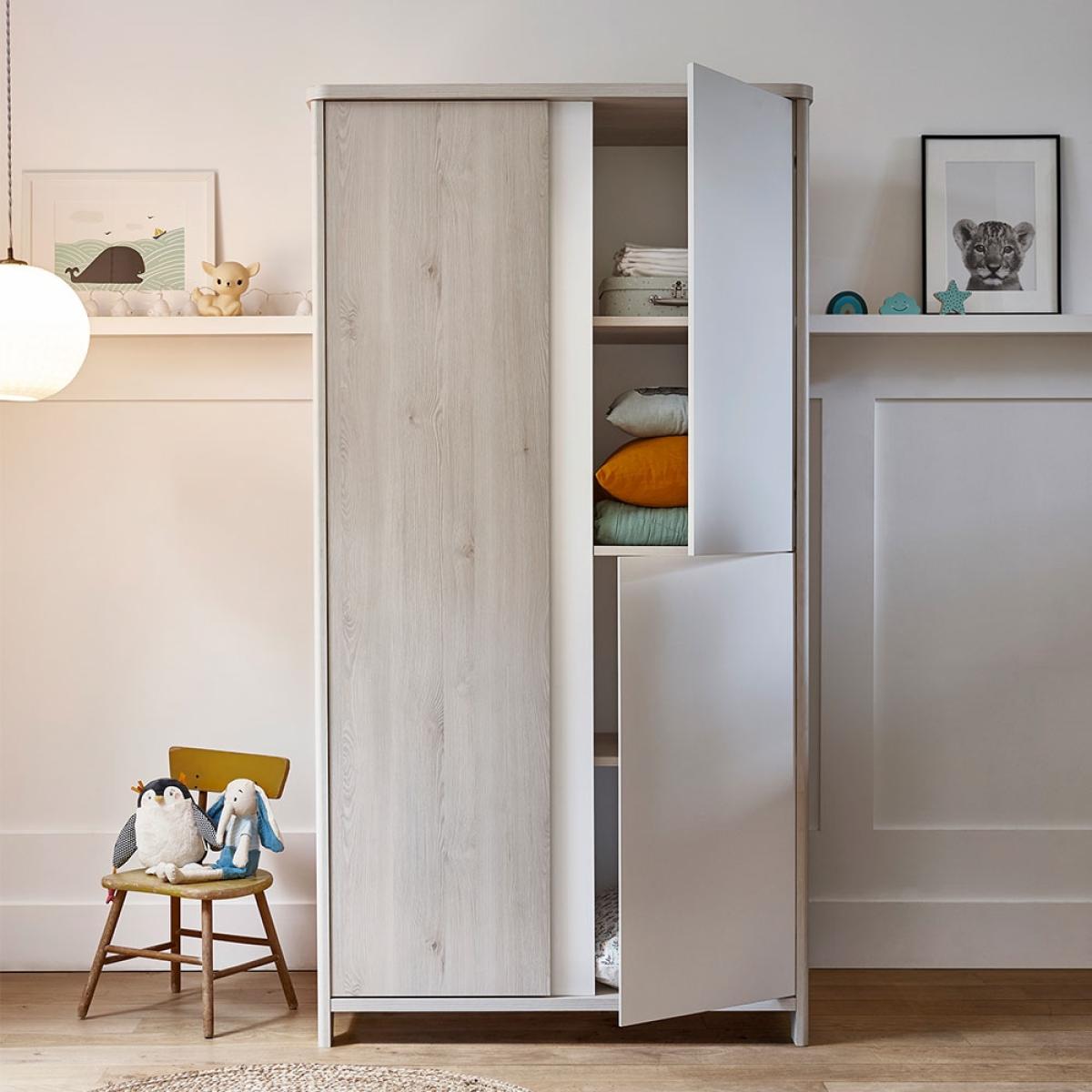 A place to store all of those nursery essentials - you need the Galipette Sacha Wardrobe! Keeping the nursery organised and clutter-free, the sectional interior offers a helping hand. With 2 hanging rails for those extra special outfits and a further 5 shelves, there's a place for everything you'll need. All hidden behind soft close doors, this clever design detail prevents trapped fingers and keeps noise to a minimum; so, while you're busy sorting the washing, nap time won't be interrupted! PHEW! Made from sustainably sourced materials and available in a choice of finishes to coordinate with the rest of the Sacha collection, from cot beds to chest of drawers, create your dream nursery furniture set!.