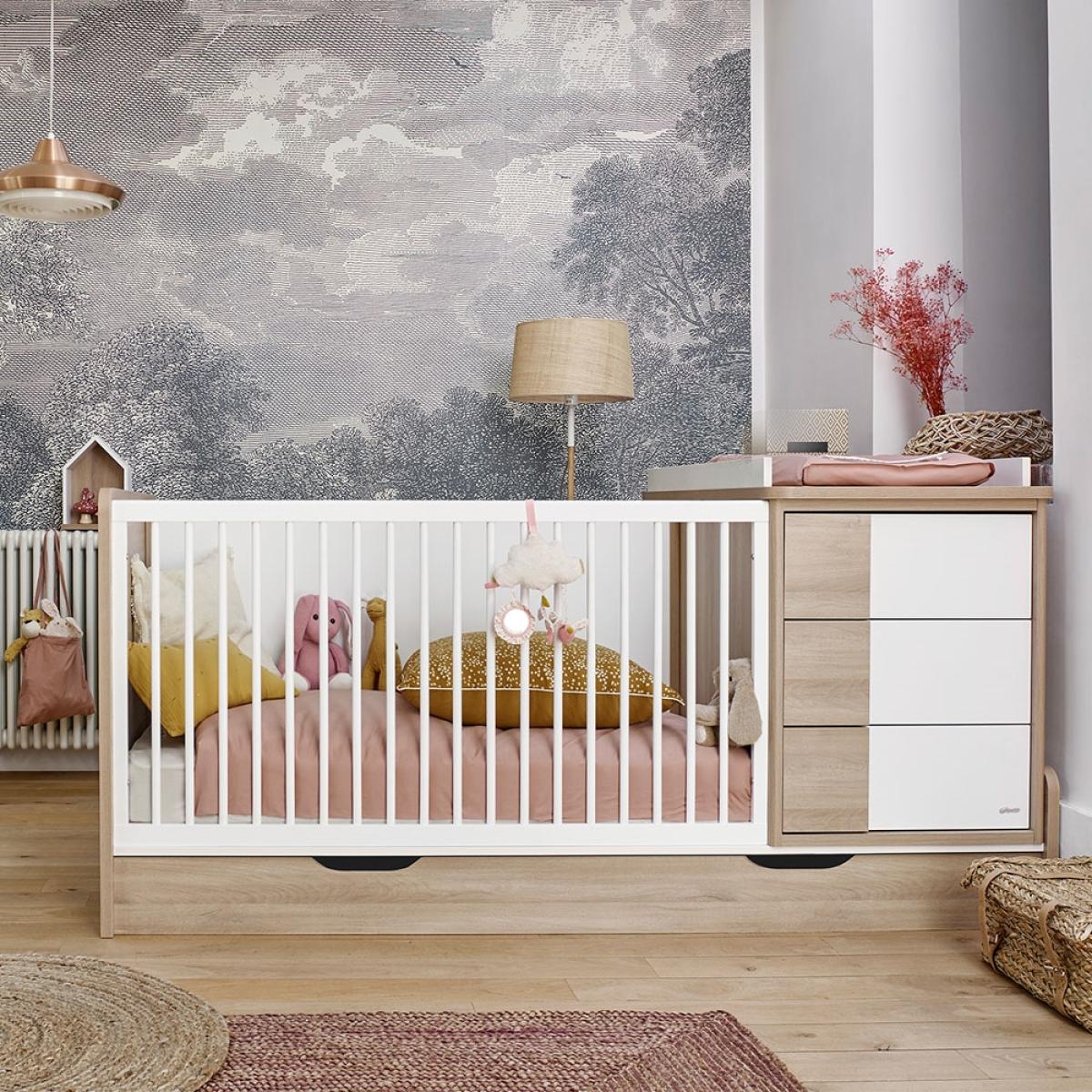 I love this cot for its versatility and sleek, minimalist design that complements a variety of nursery styles-from Scandi chic to contemporary minimalism. The Galipette Sacha's 3-in-1 functionality means it can evolve with your little one, making it a practical choice for long-term use. When styling, consider pairing it with soft, neutral tones to keep the space feeling calm, or introduce muted pastels for a gentle, cosy vibe. Practical tips include adding organic textiles, such as cotton or linen, to enhance comfort, and using storage solutions nearby to keep essentials within reach while maintaining a clean look. This piece would work beautifully in a bright, airy nursery with simple decor, but equally in a more eclectic or textured space with layered textiles.