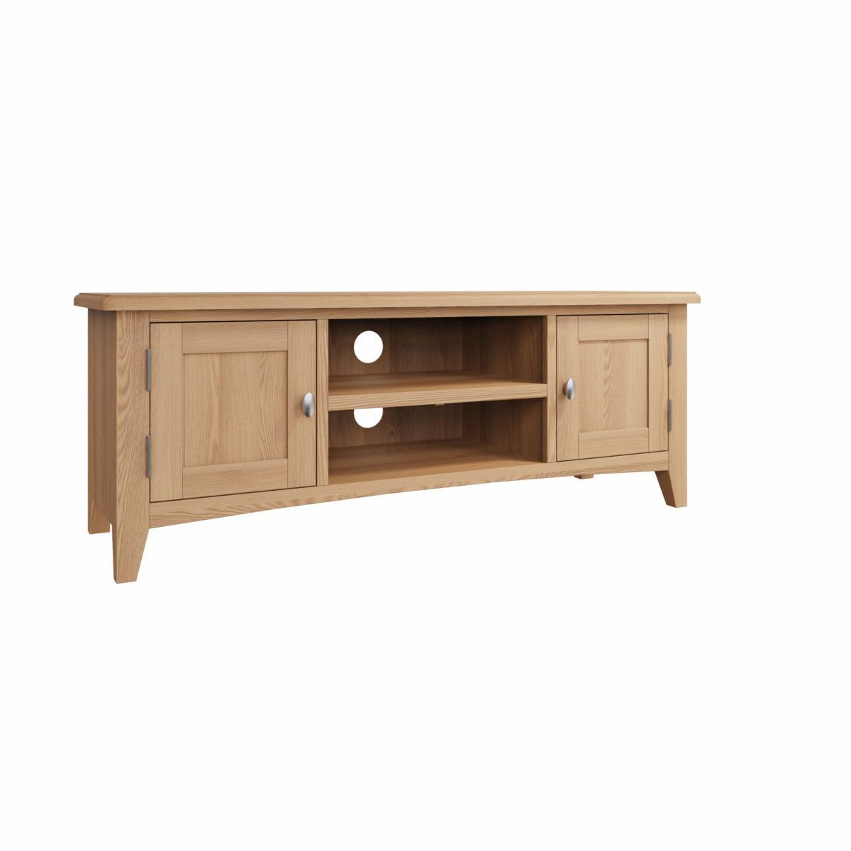 I love this TV unit because of its clean, natural light oak finish which adds warmth without overwhelming the space. It works really well in modern or Scandi-inspired interiors thanks to its simple, understated design. Practical styling tips include keeping accessories minimal-perhaps a few curated decorative objects or books on the open shelf-and pairing it with soft textiles or greenery to make the space feel inviting. Its neutral tone makes it versatile for various colour schemes, from muted pastels to bold, contrasting hues, making it a reliable piece that can adapt as your interior style evolves.