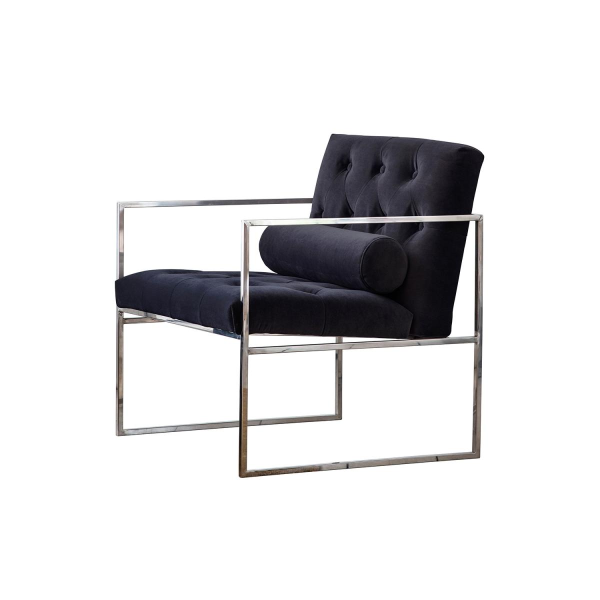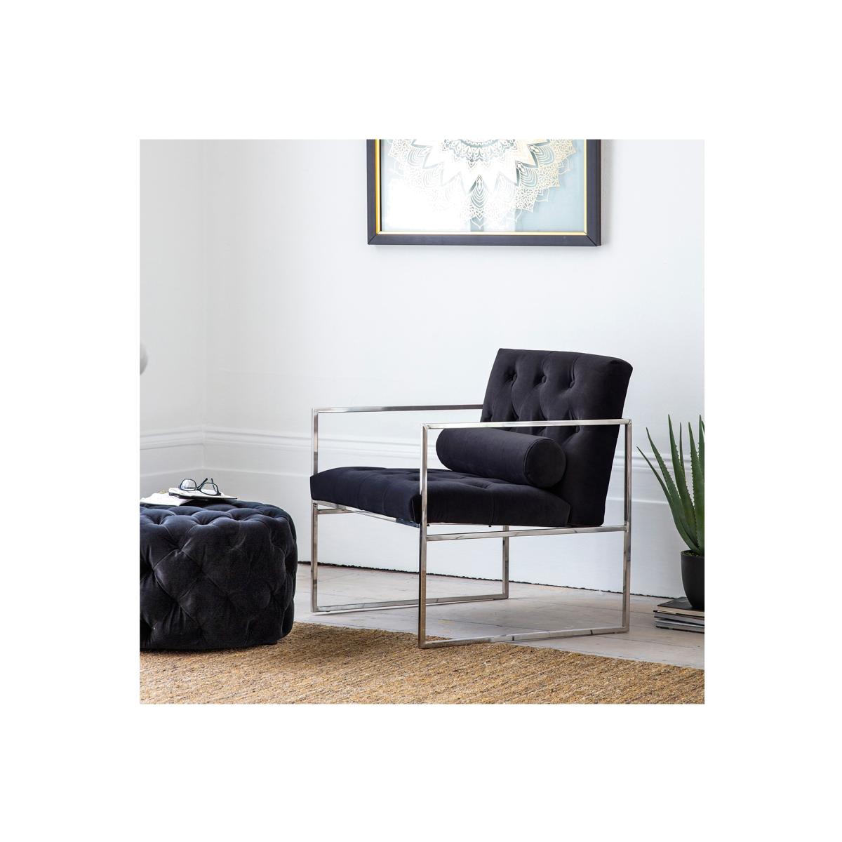 The stunning Sergio Armchair with its luxurious Jet Velvet cushioning and bold metal leg is a guaranteed focal point.