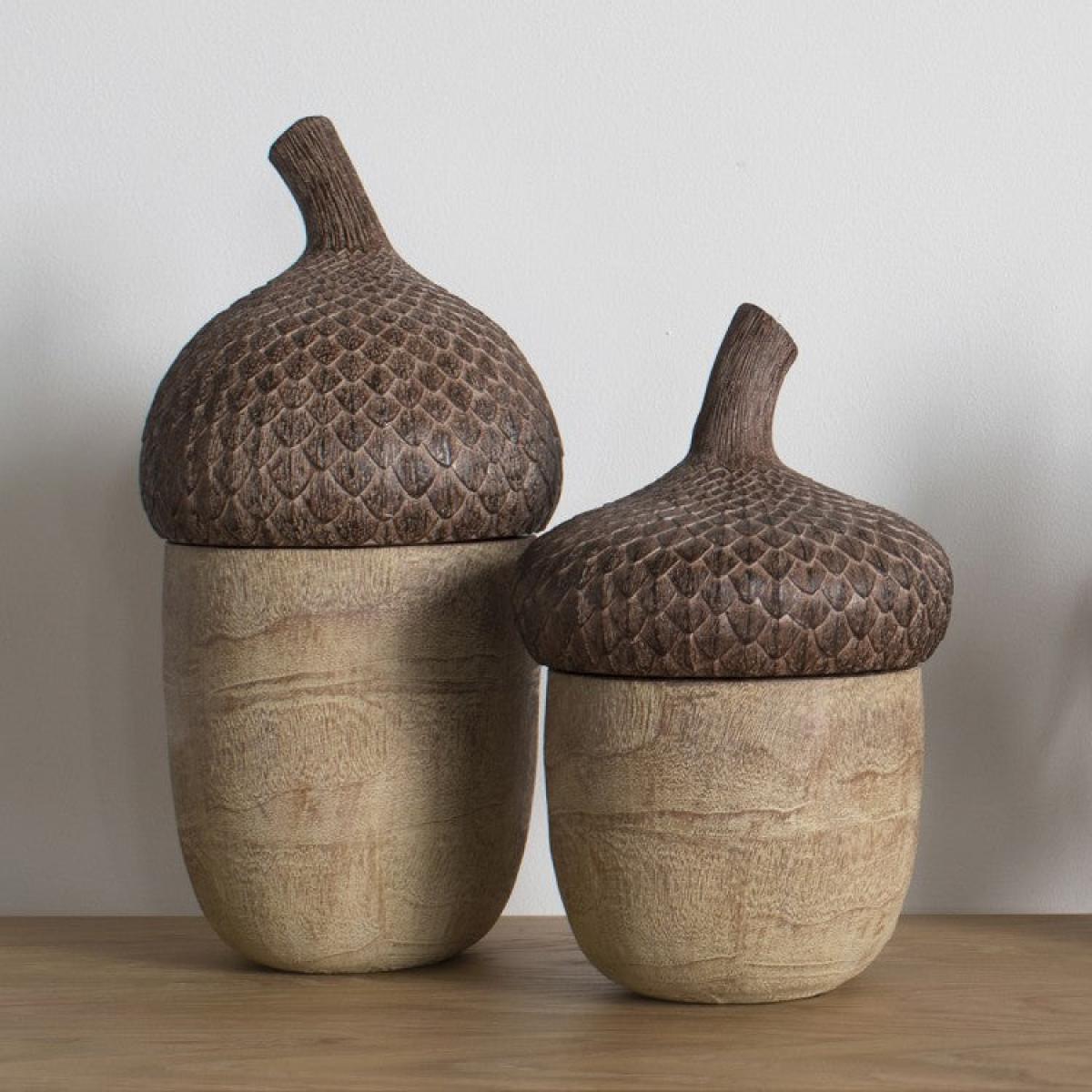 Sculpted from resin with a finish resembling turned and carved wood, the delicate detail on the caps creates a vividly realistic effect on this Acorn jewel case. Used alone or as a pair with its slightly larger twin, this fabulously organic-looking storage solution can create order in the smallest of spaces. Complementing stone tiles in the bathroom, bringing a natural contrast to the chrome of your kitchen or as that ever faithful little pot on your hallway console table where keys and change are kept safe until you next leave, this tactile jewel case has a multitude of uses and is eye-catching to boot. *Moot Trading Ltd is not a lender and acts only as an introducer. The credit product is provided by Klarna Bank AB (publ). Credit is only available to permanent UK residents aged 18 and over, subject to status. Terms and conditions apply. Please note that the following products are not regulated by the FCA: Pay in 30 days and Pay in 3 instalments. Read More.