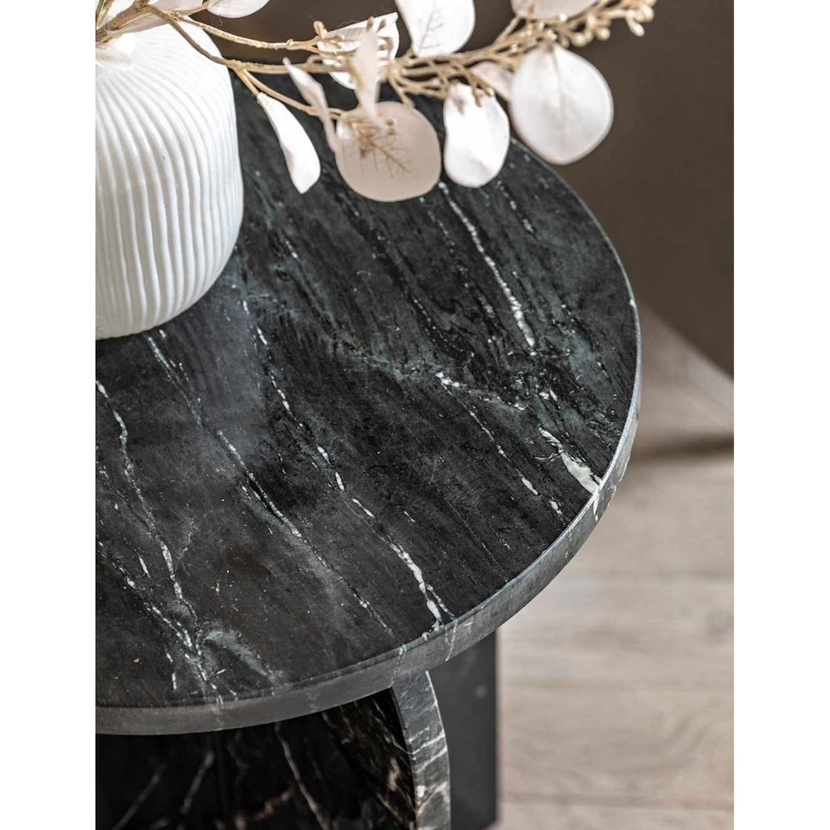 Crafted from luxurious marble, this Gallery Direct side table is a timelessly elegant choice for your space. Its compact form pairs a round top with a curved base to complement the refined aesthetic.