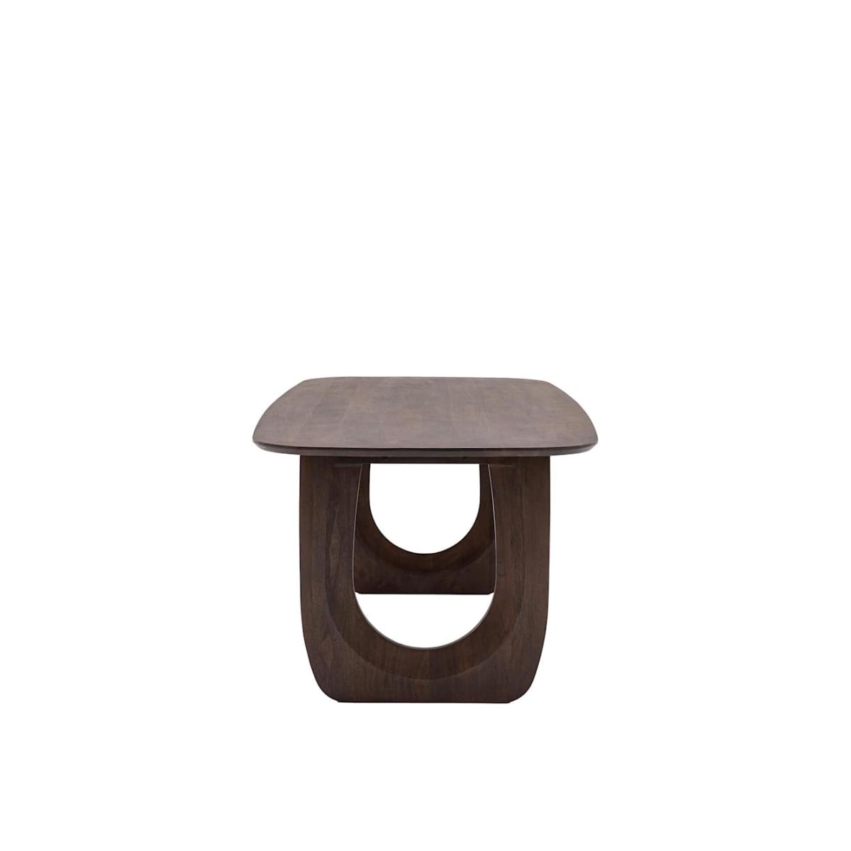 Infuse your dining space with a dose of 70s-inspired cool with the Arc dining table from Gallery Direct. Crafted from richly grained mango wood stained to a deep hue, this table makes a bold statement. The striking U-shaped legs are the undeniable focal point, lending a retro edge.