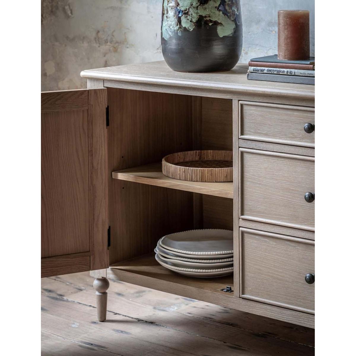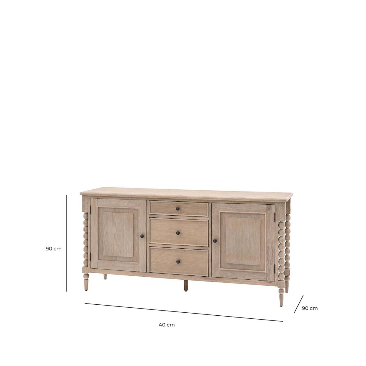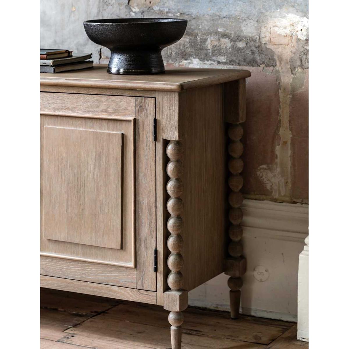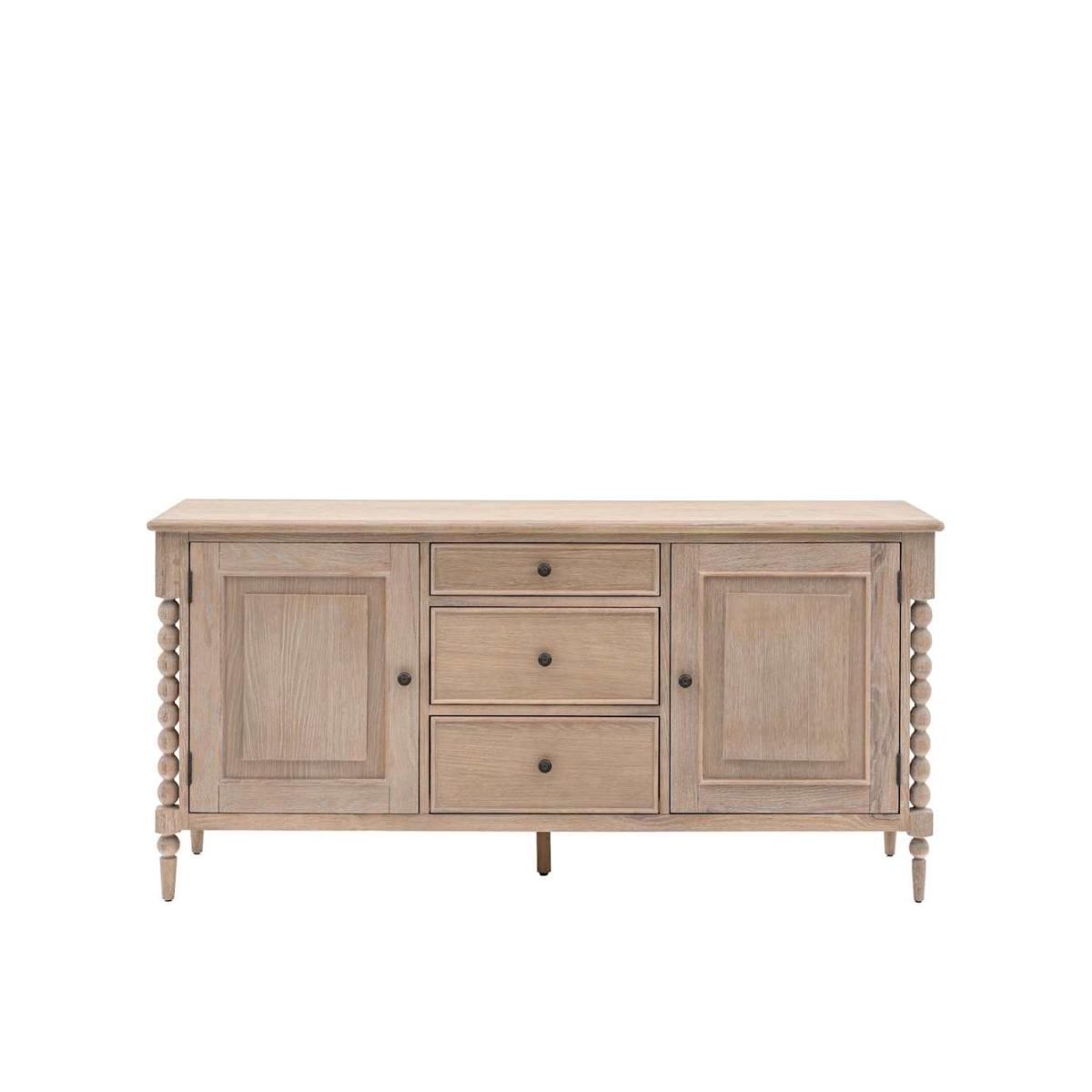 It's all in the stylish details with this Artisan sideboard from Gallery Direct. It's crafted from lime-washed solid oak and oak veneers for a soft tone, with three central drawers and two spacious side doors providing practical storage. The hand-turned bobbin corners immediately stand out.