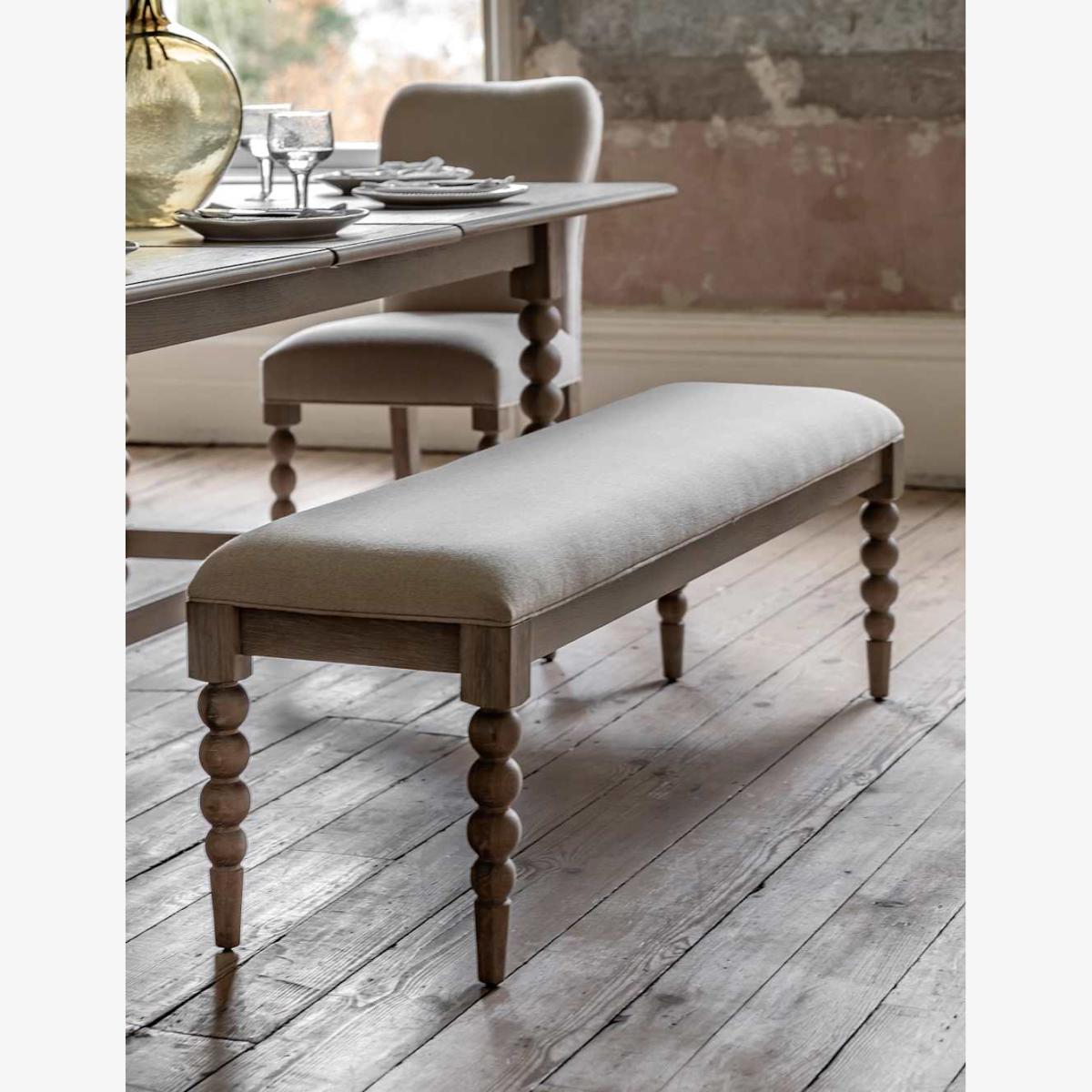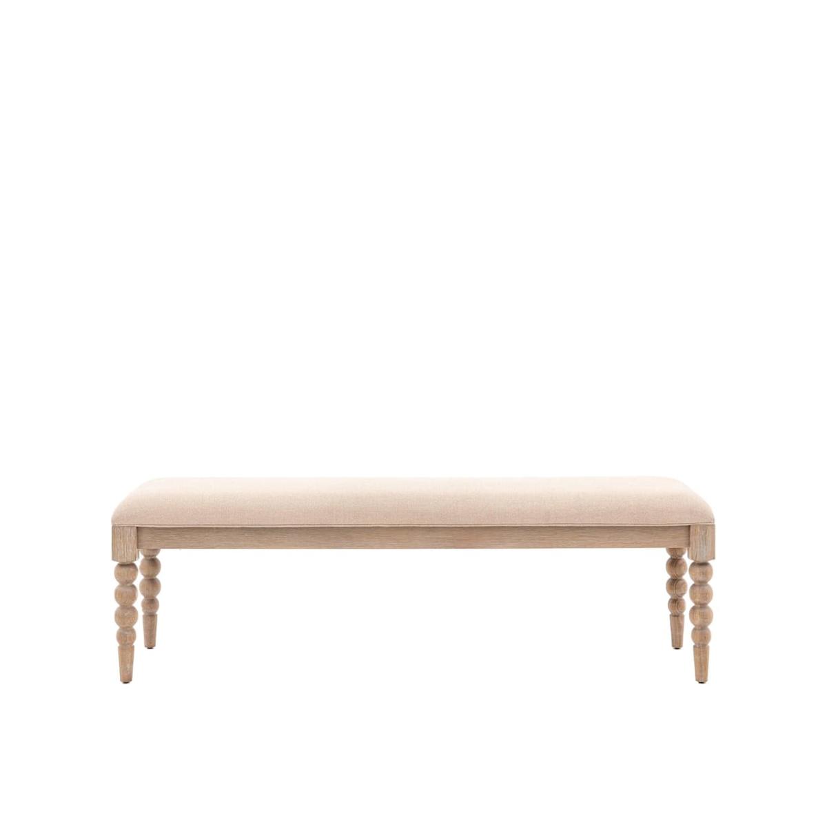 Add an elegant touch to your dining room with this bench from Gallery Direct. It's made for comfort and style, crafted from a strong oak frame with an oak veneer and complete with a cushioned seating area. The narrow legs have textured detailing for a distinctive finish.