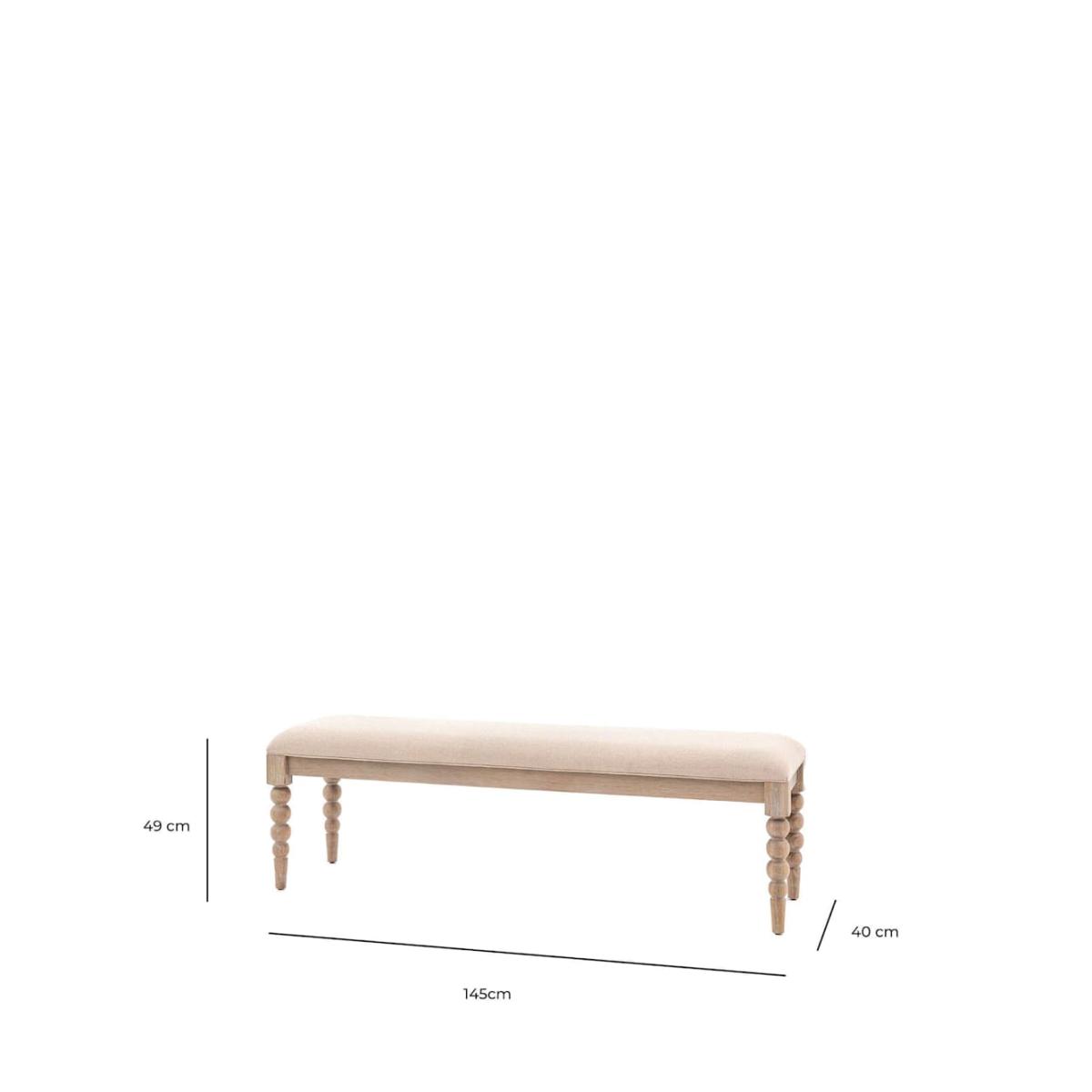 I really like this artisan bench for its turned legs and neutral, natural finish - it brings just the right amount of texture without overwhelming a space. It suits farmhouse, Scandi-minimal or coastal interiors equally well and doubles as extra dining seating or hallway furniture. For styling, tuck a soft linen throw over one end and add a single boucle cushion to introduce contrast; position it under a console table with woven baskets beneath for storage, or pull it up to the table and layer with mix-and-match dining chairs for a more relaxed, edited look.