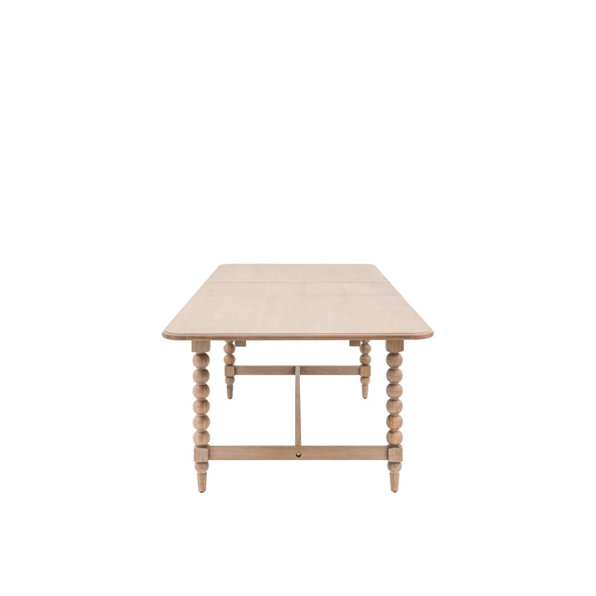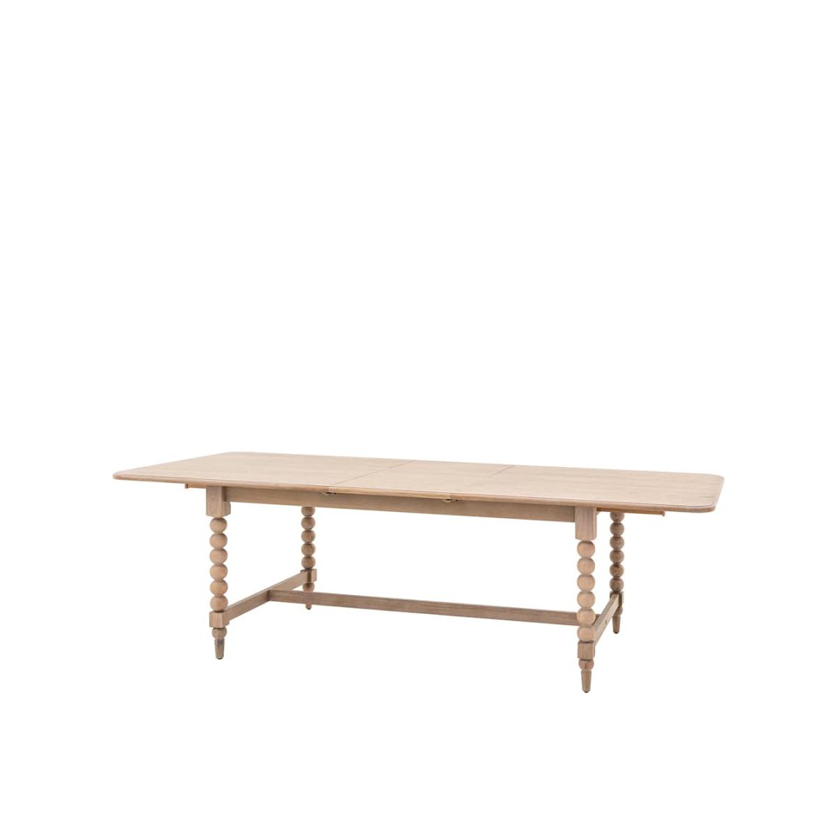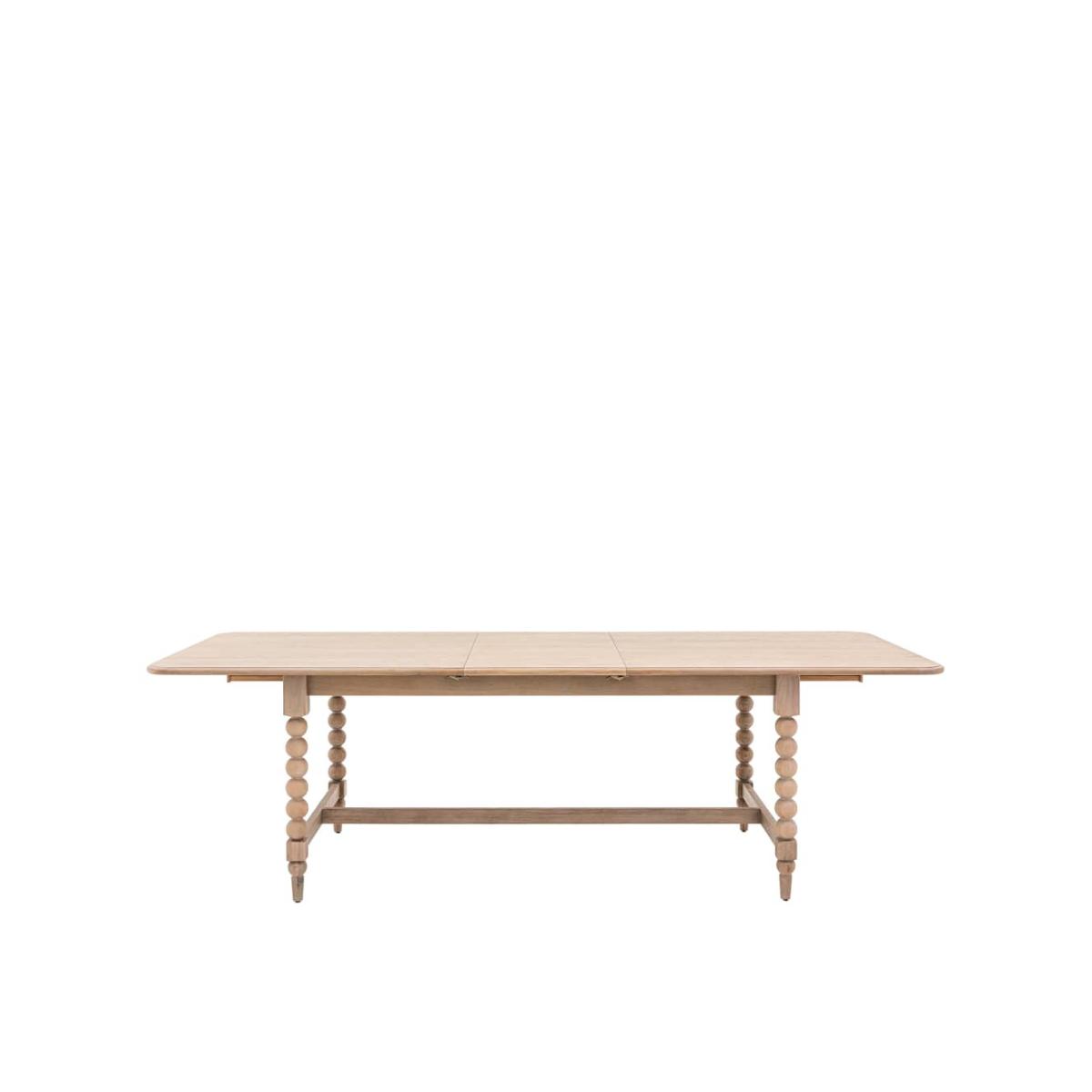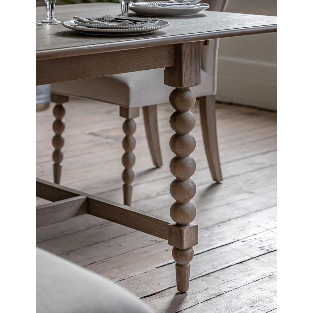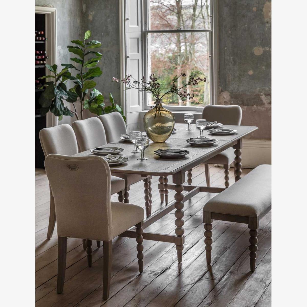 Celebrate the art of woodworking with the Artisan dining table from Gallery Direct. Its extending top offers versatile functionality, while the legs showcase exquisite, hand-crafted bobbin detailing, a testament to master woodturners. Crafted from fine oak solids and veneers, the table boasts a subtle lime wash finish.