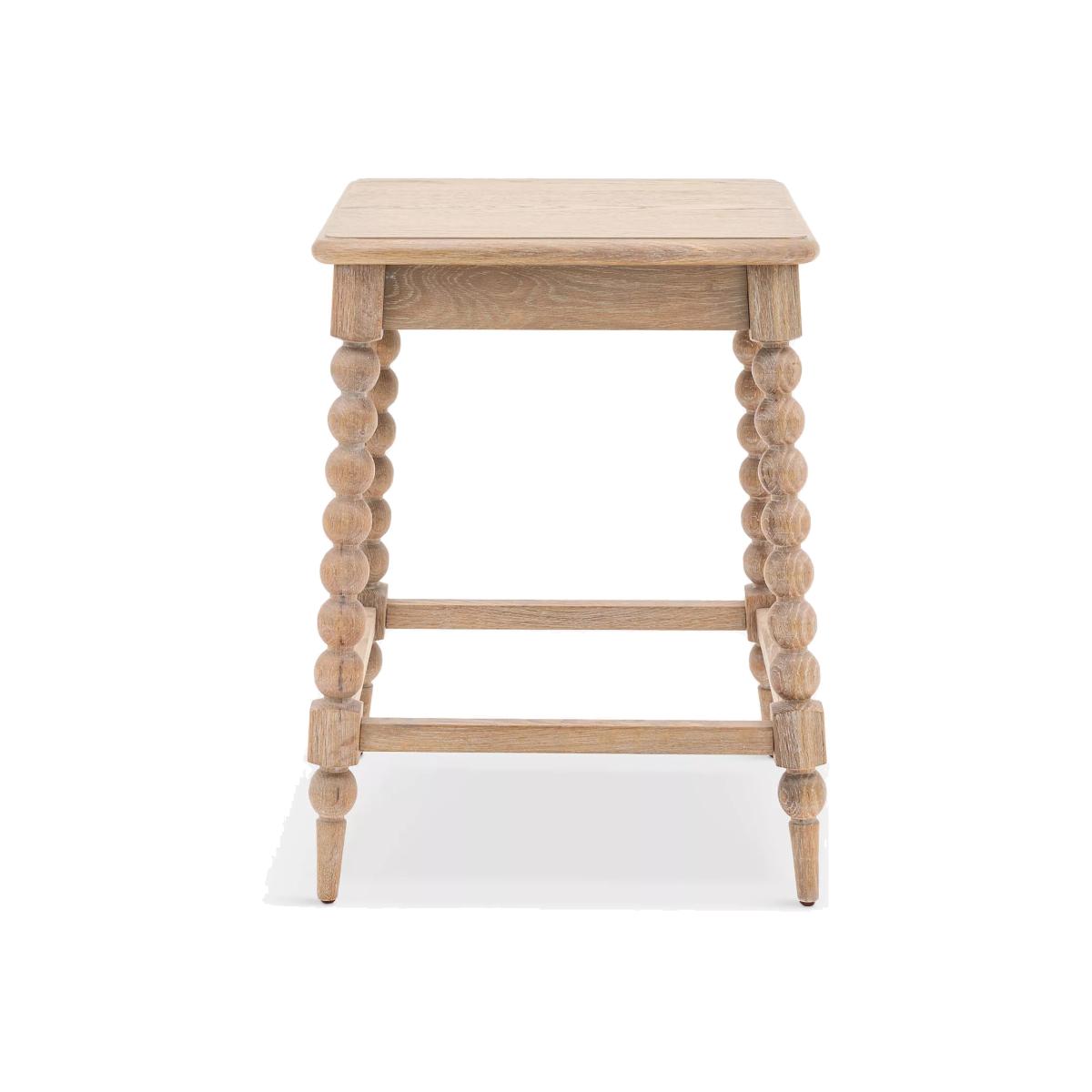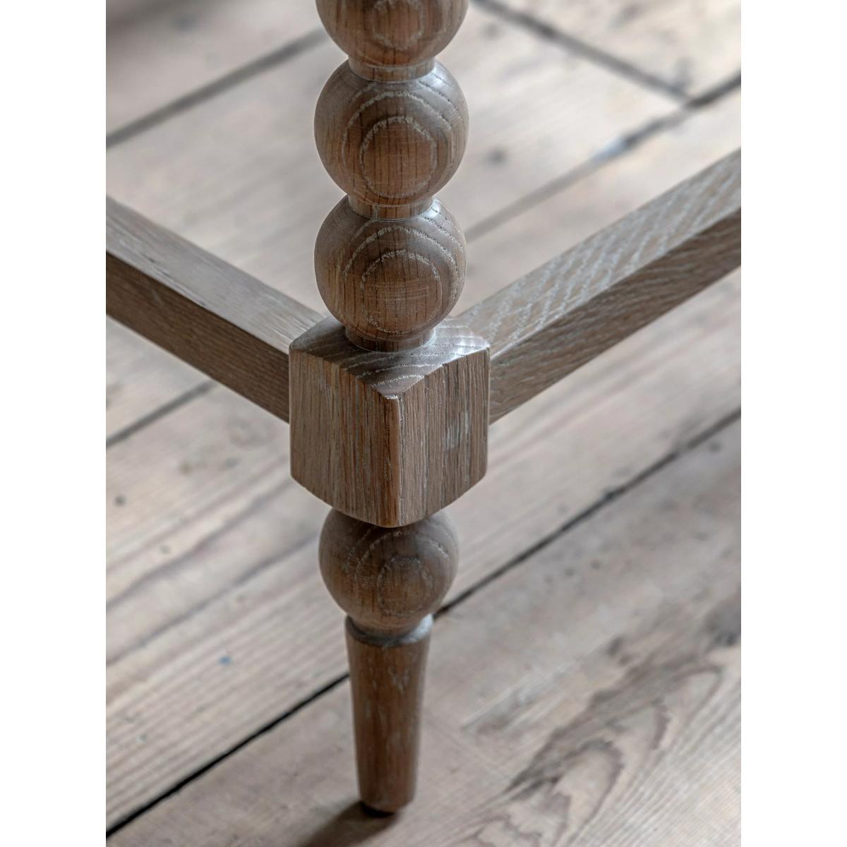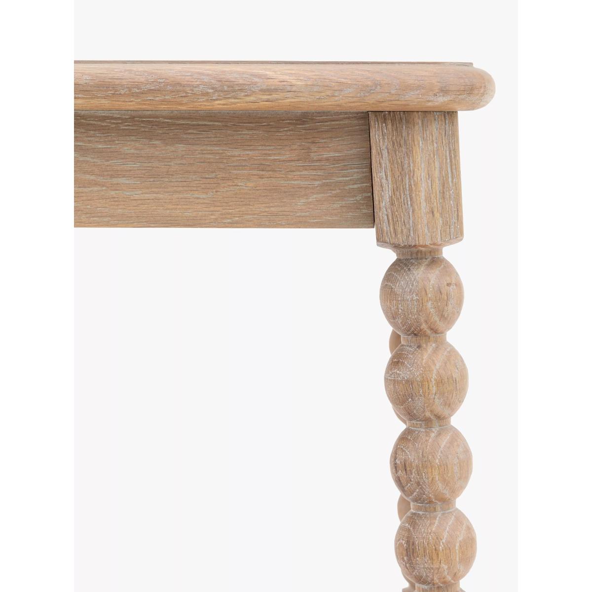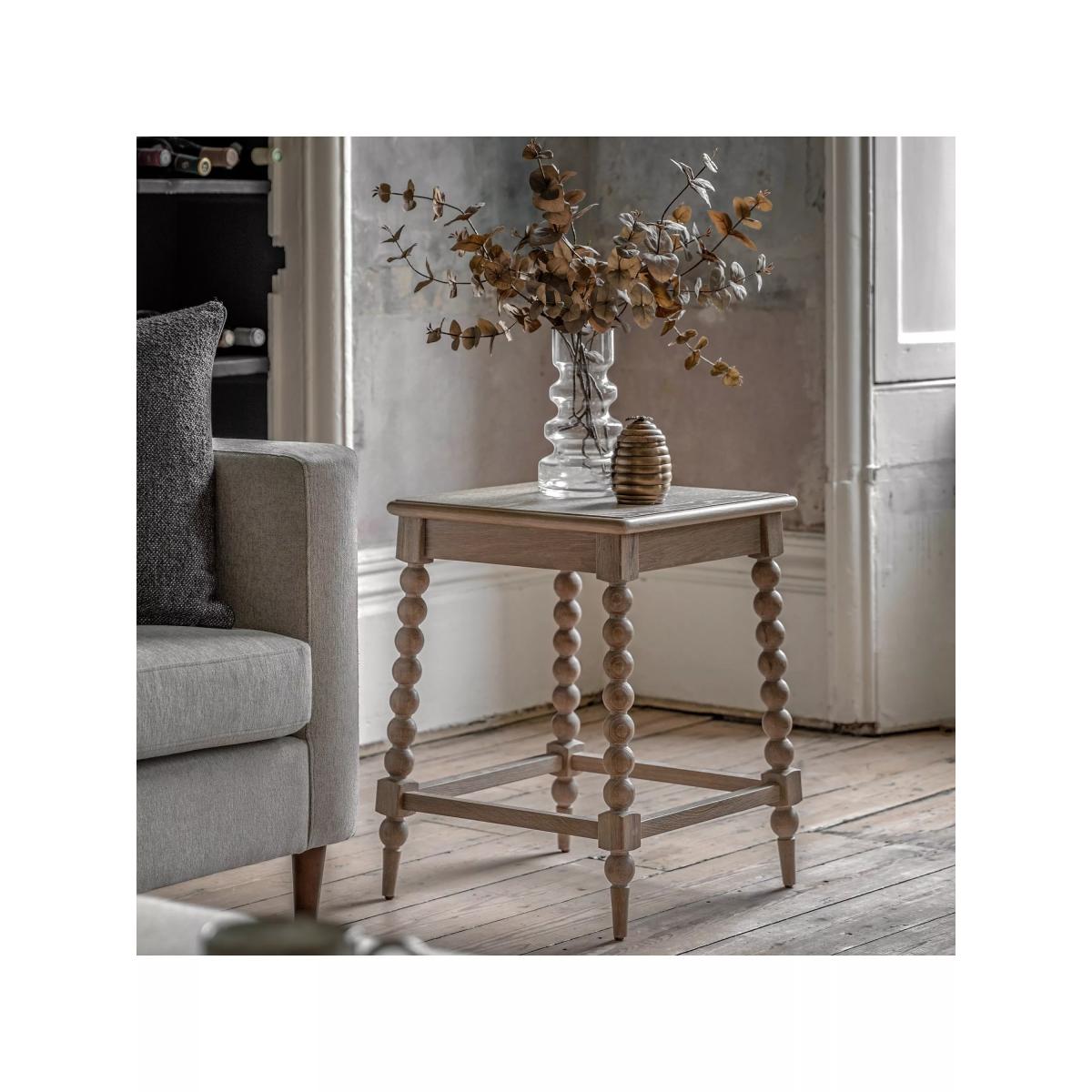 This stunning side table would make an elegant addition to any interior. The play on a classic look emphasises the hand-crafted "bobbing" detail down each leg. This eye-catching design feature is created by turning the wood on a lathe, a task carried out by the finest craftsmen. The table is made using beautiful oak solids and veneers where practical, with a very subtle lime wash tone to the finish which is soft and mellow. Matching pieces are available. Want to see it first? You may want to see and get a feel for the furniture in one of our shops before ordering. We'll be able to tell you where the range you'd like to view is on display.