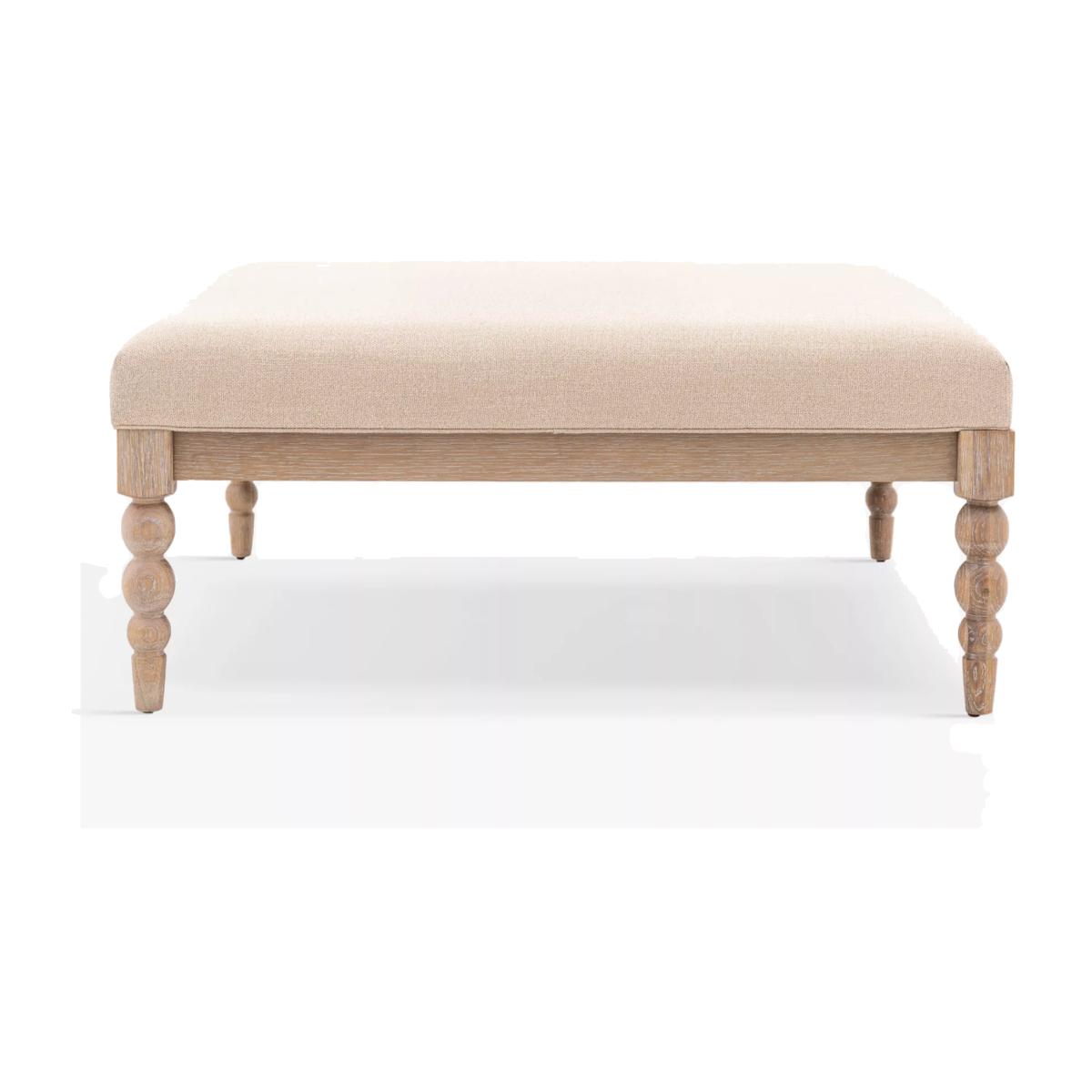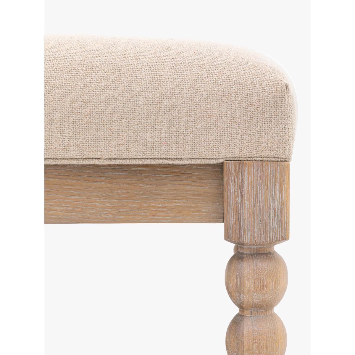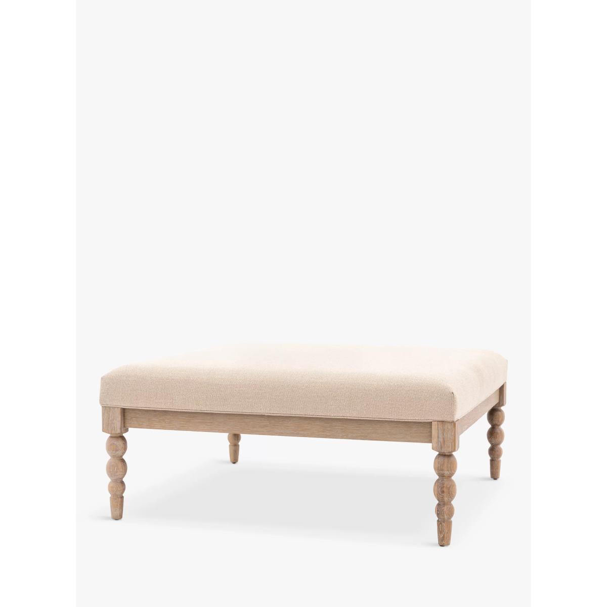 The eye-catching legs on this beautiful coffee table feature hand-crafted "bobbing" detail which is created by turning the wood on a lathe, a task carried out by the finest craftsmen. The table is made from oak with a very subtle lime wash tone to the finish, which is soft and mellow, paired with biscuit-coloured fabric for the upholstered seat. Matching pieces are available. Matching pieces are available. Want to see it first? You may want to see and get a feel for the furniture in one of our shops before ordering. We'll be able to tell you where the range you'd like to view is on display.