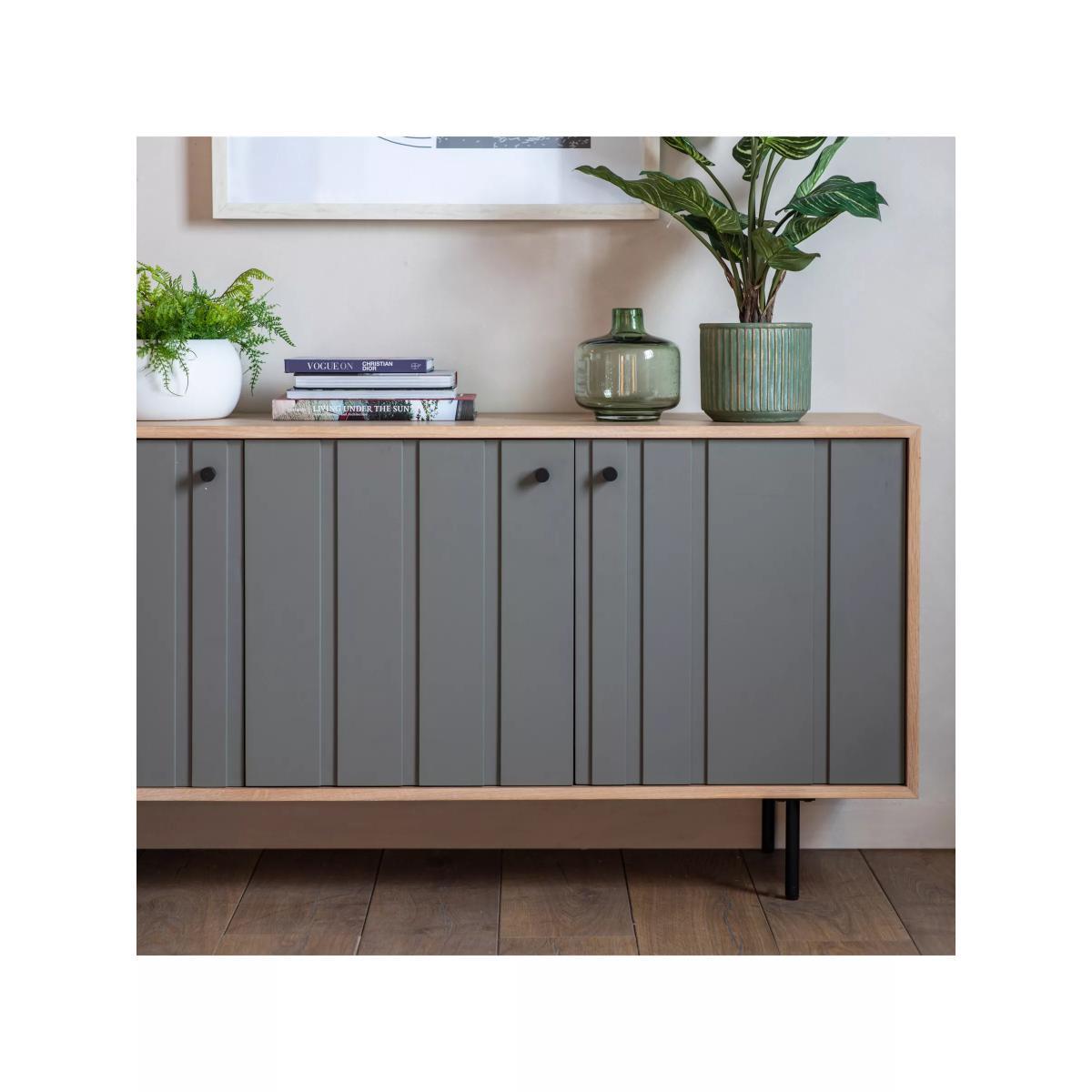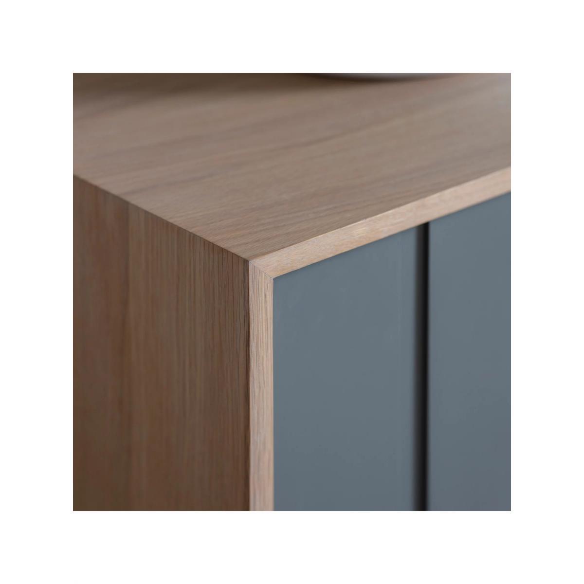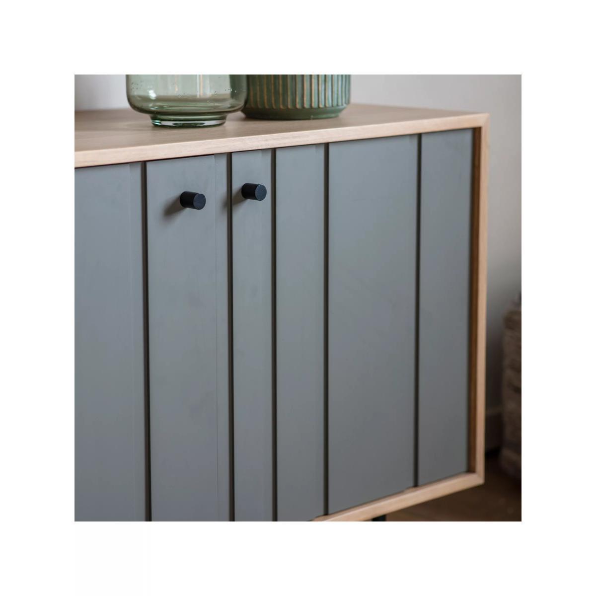 This sideboard takes inspiration from Japanese minimalism and sleek Scandi style. A fusion that will bring a calm and contemporary feel into your living space, it's made from solid oak in a natural finish and contrasted with painted panelled doors. There's plenty of storage space available thanks to six adjustable shelves as well as an internal drawer, and slim metal legs and matching handles complete the design. Want to see it first? You may want to see and get a feel for the furniture in one of our shops before ordering. We'll be able to tell you where the range you'd like to view is on display.