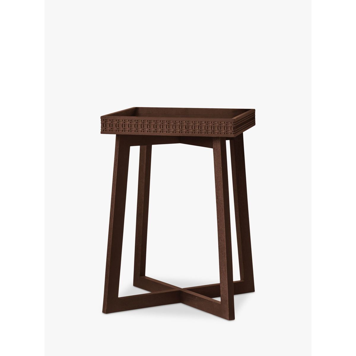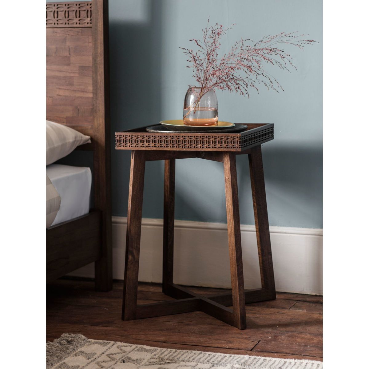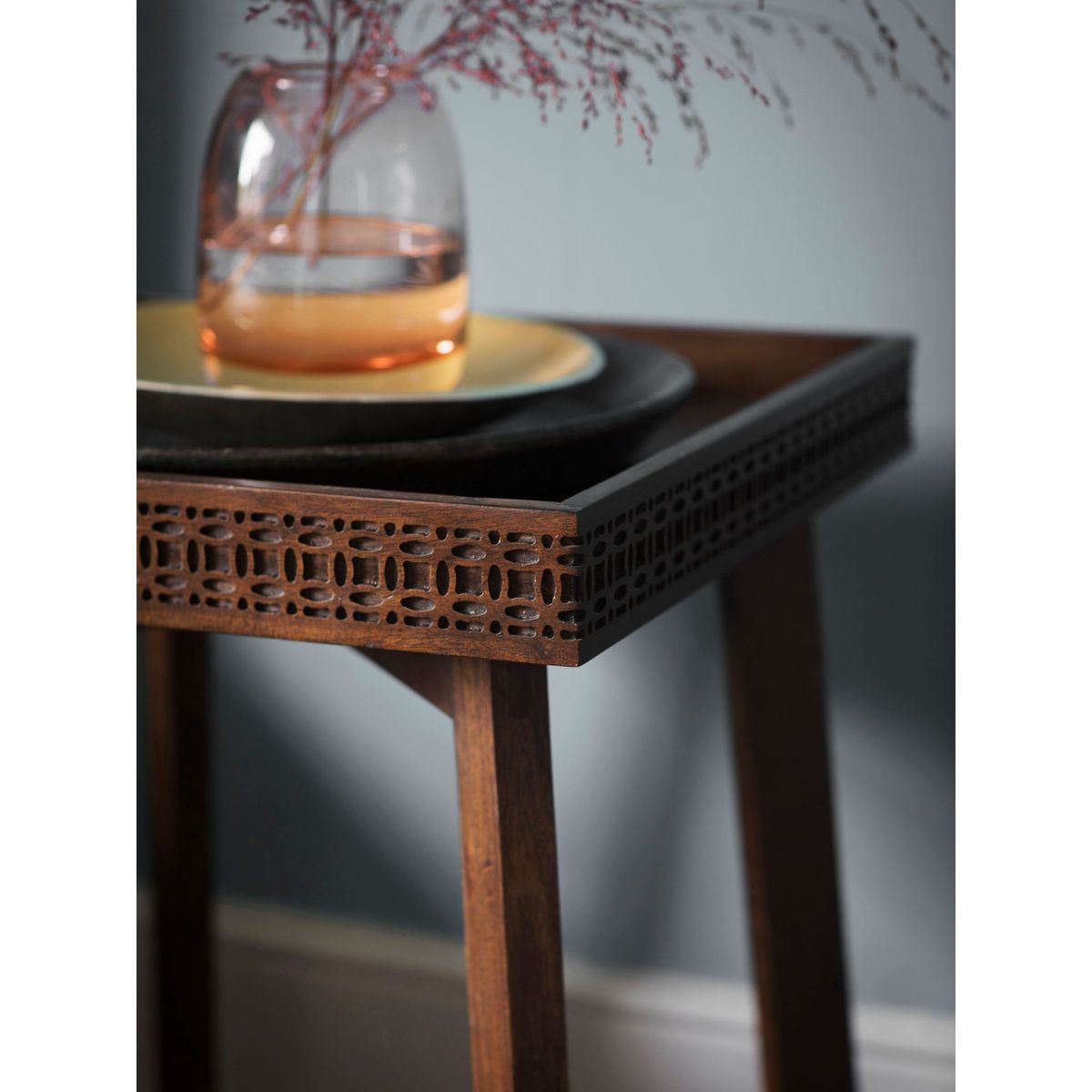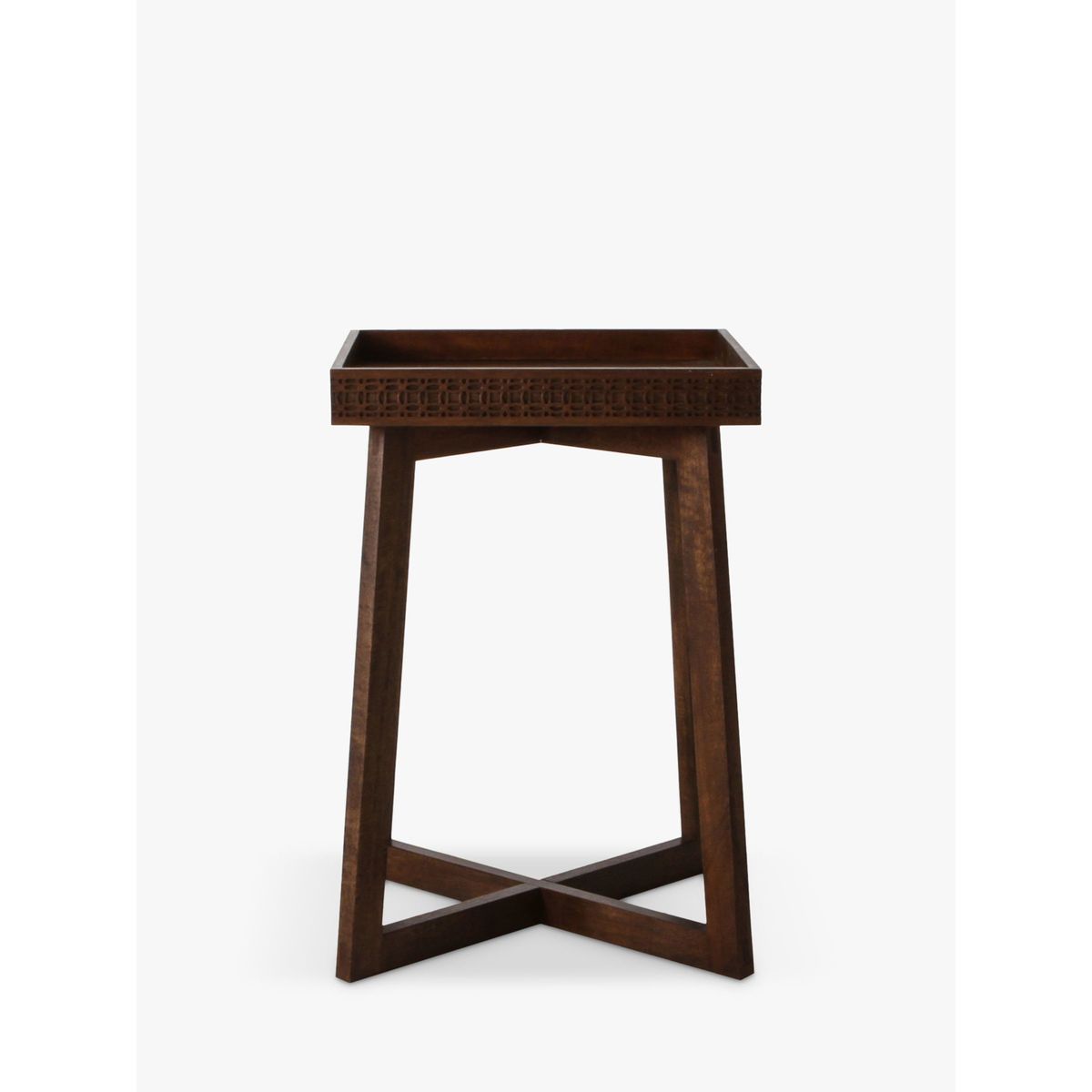 Ideal for smaller spaces, this versatile side table is made from solid mango wood. The fretwork pattern around the edge of the tray-style surface top lends a delicate design detail, while the legs are formed in a modern, geometric shape and provide a stable and secure base. Want to see it first? You may want to see and get a feel for the furniture in one of our shops before ordering. We'll be able to tell you where the range you'd like to view is on display.