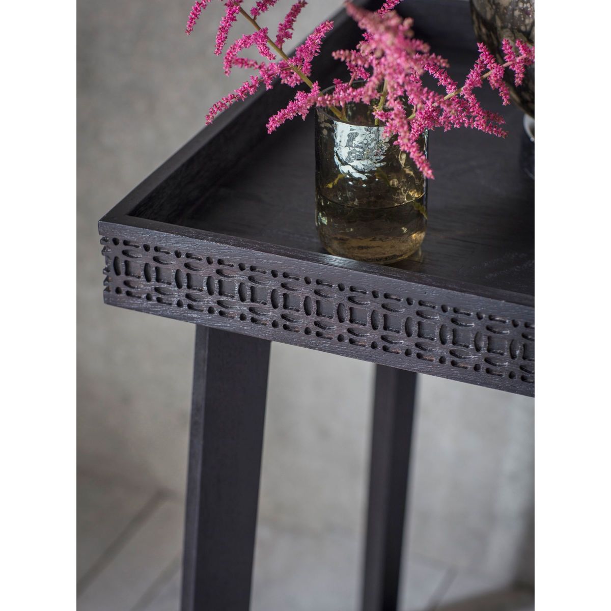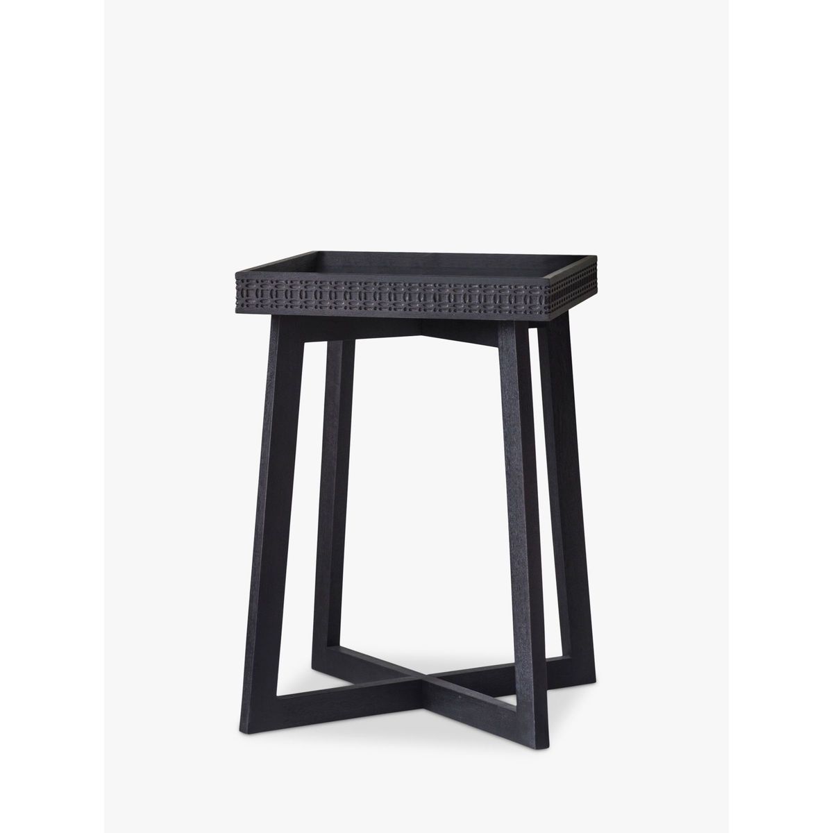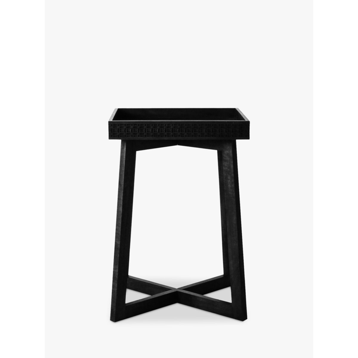 Ideal for smaller spaces, this versatile side table is made from solid mango wood. The fretwork pattern around the edge of the tray-style surface top lends a delicate design detail, while the legs are formed in a modern, geometric shape and provide a stable and secure base. Want to see it first? You may want to see and get a feel for the furniture in one of our shops before ordering. We'll be able to tell you where the range you'd like to view is on display.