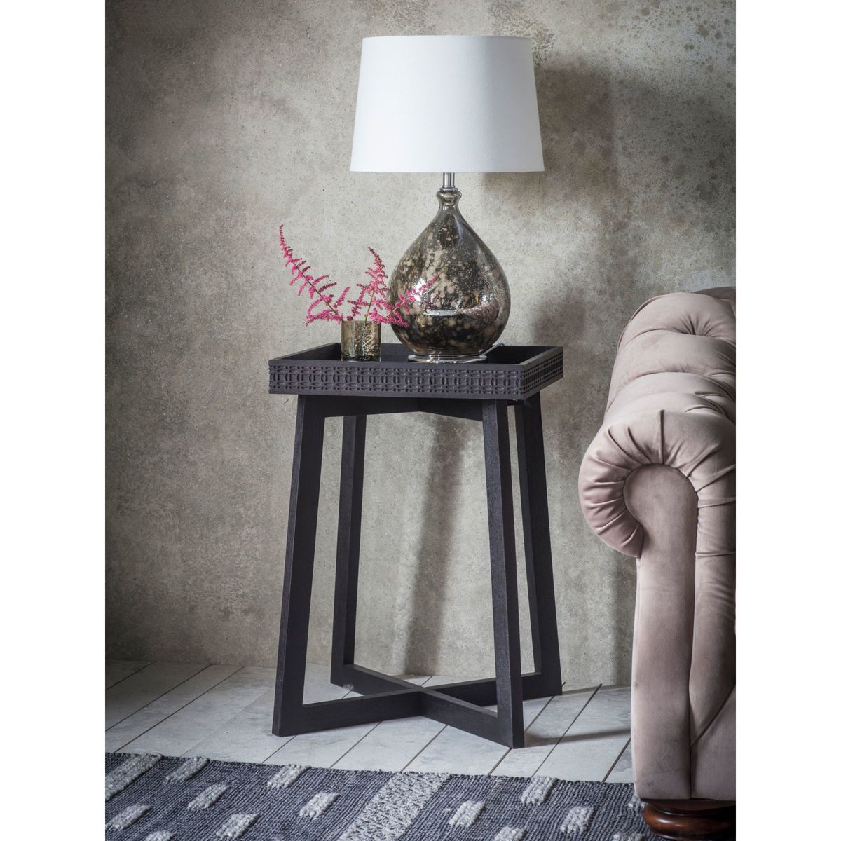 I really like this side table for its versatile Boho charm and modern edge. It works well in a variety of interiors, from eclectic and bohemian spaces to minimal and contemporary schemes, adding a touch of texture and interest. Practical styling tips include using it as a bedside table with a combination of layered lamps and small plants, or as a side piece in a living room with a stack of books and a decorative tray. Its compact size makes it ideal for smaller spaces, and its dark finish offers a stylish contrast when paired with lighter tones or natural materials like wood and textiles.