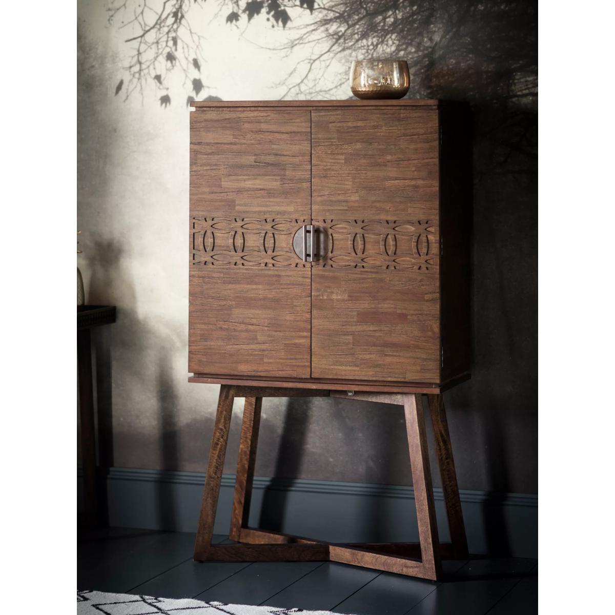Built from a combination of mango wood and high-quality MDF, this sculpted storage cabinet offers a timeless style for your interior. The design is robust and practical, with geometric-shaped legs ensuring a stable base, but a delicate fretwork pattern in the centre of the doors adds a soft design detail. Inside, there's ample storage space and shelving to keep your items organised. Want to see it first? You may want to see and get a feel for the furniture in one of our shops before ordering. We'll be able to tell you where the range you'd like to view is on display.