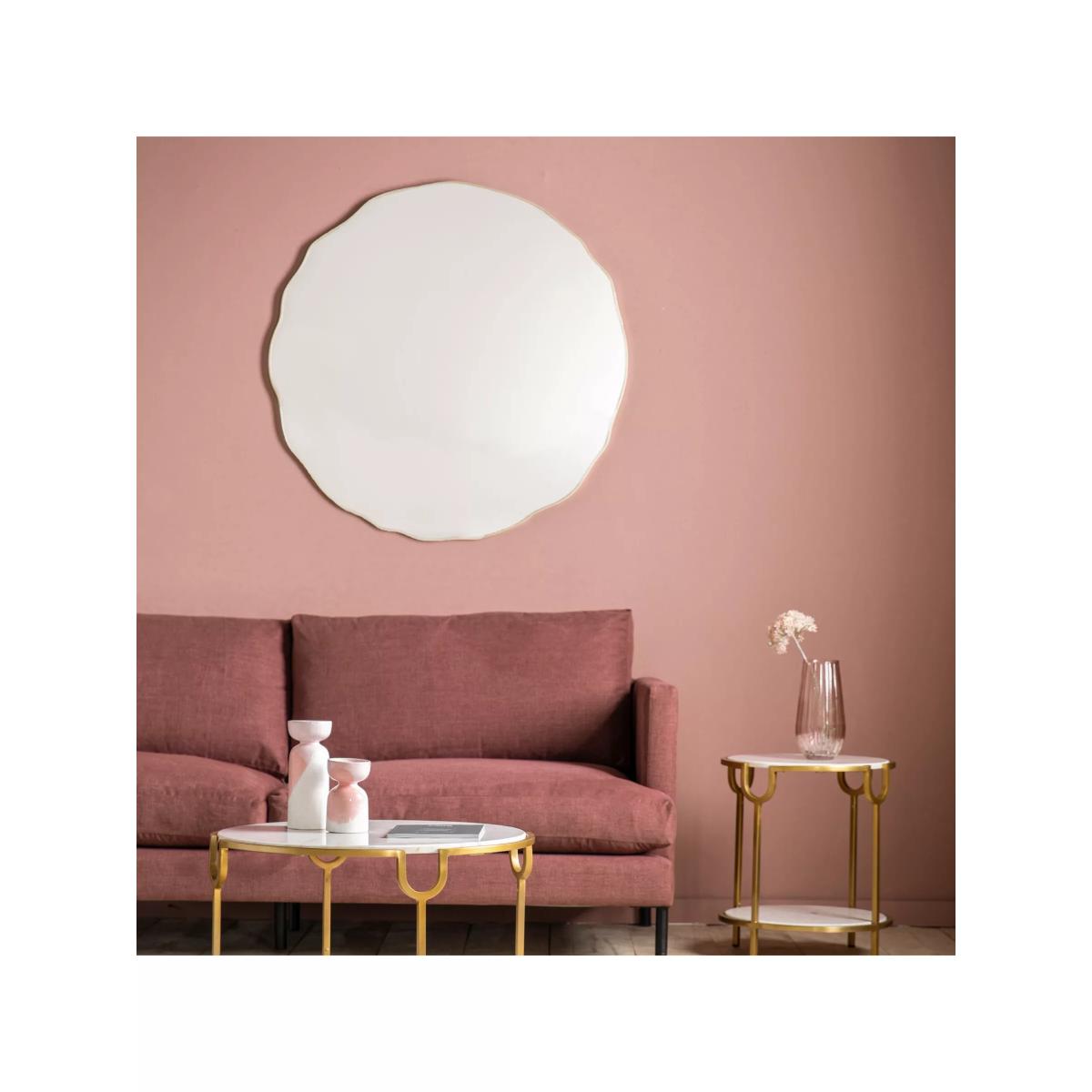 I love this round wall mirror for its versatile size and elegant champagne finish, which adds a subtle touch of sophistication without feeling overly glamorous. It works well in a variety of interiors, from contemporary and minimalist spaces to more classic or vintage-inspired rooms. The scalloped edge detail makes it a distinctive piece that can serve as both a functional mirror and a statement decorative element. For styling, consider placing it above a console table or dressing area to reflect light and make a room feel more expansive. You can also pair it with layered artwork or other textured accessories to create visual interest, while its neutral tone allows it to seamlessly complement a range of colour schemes and styles.