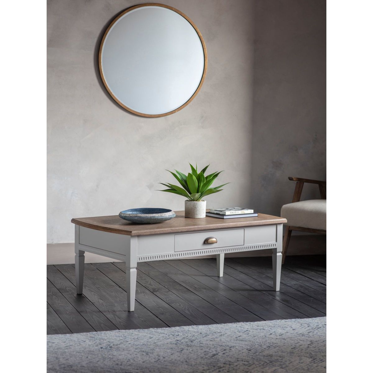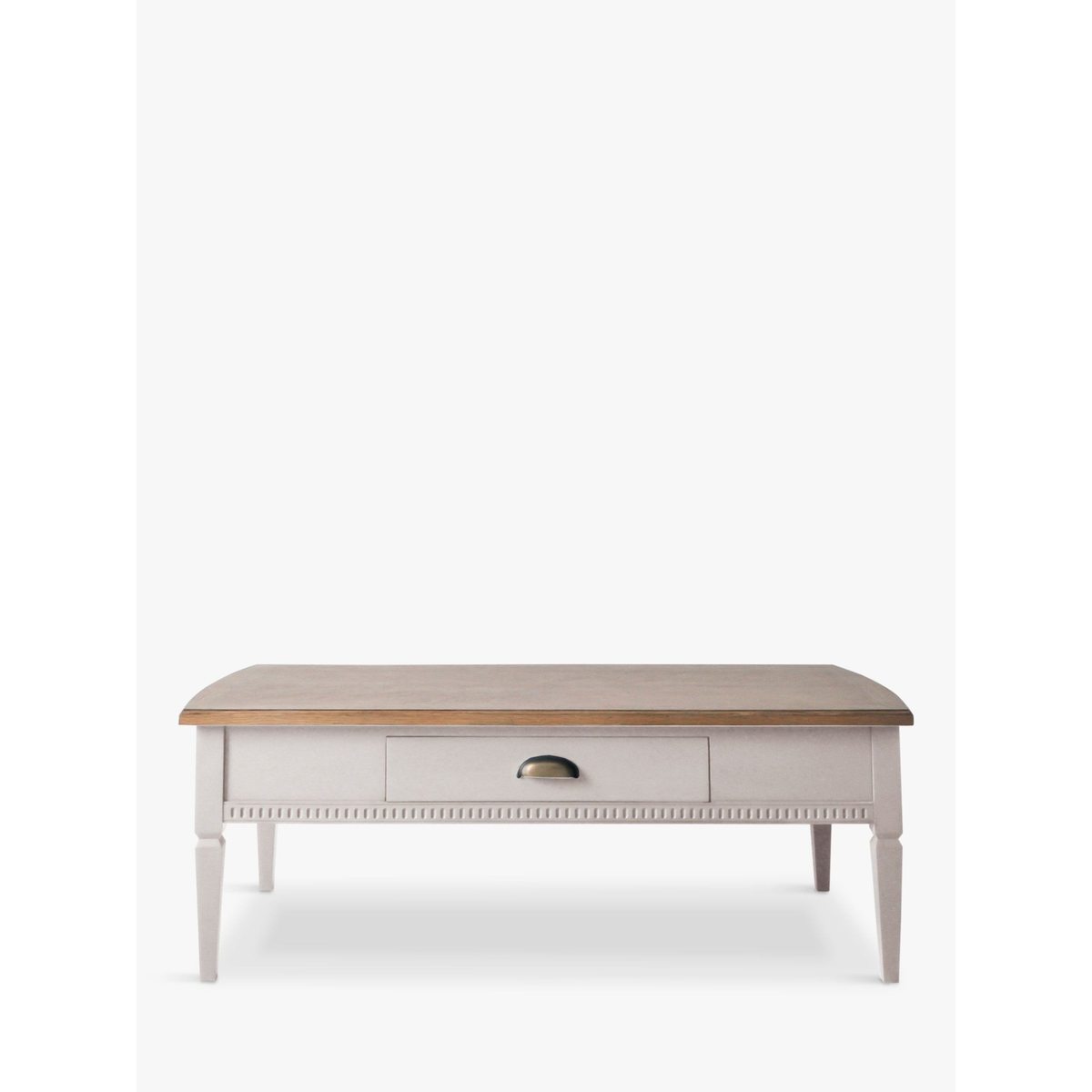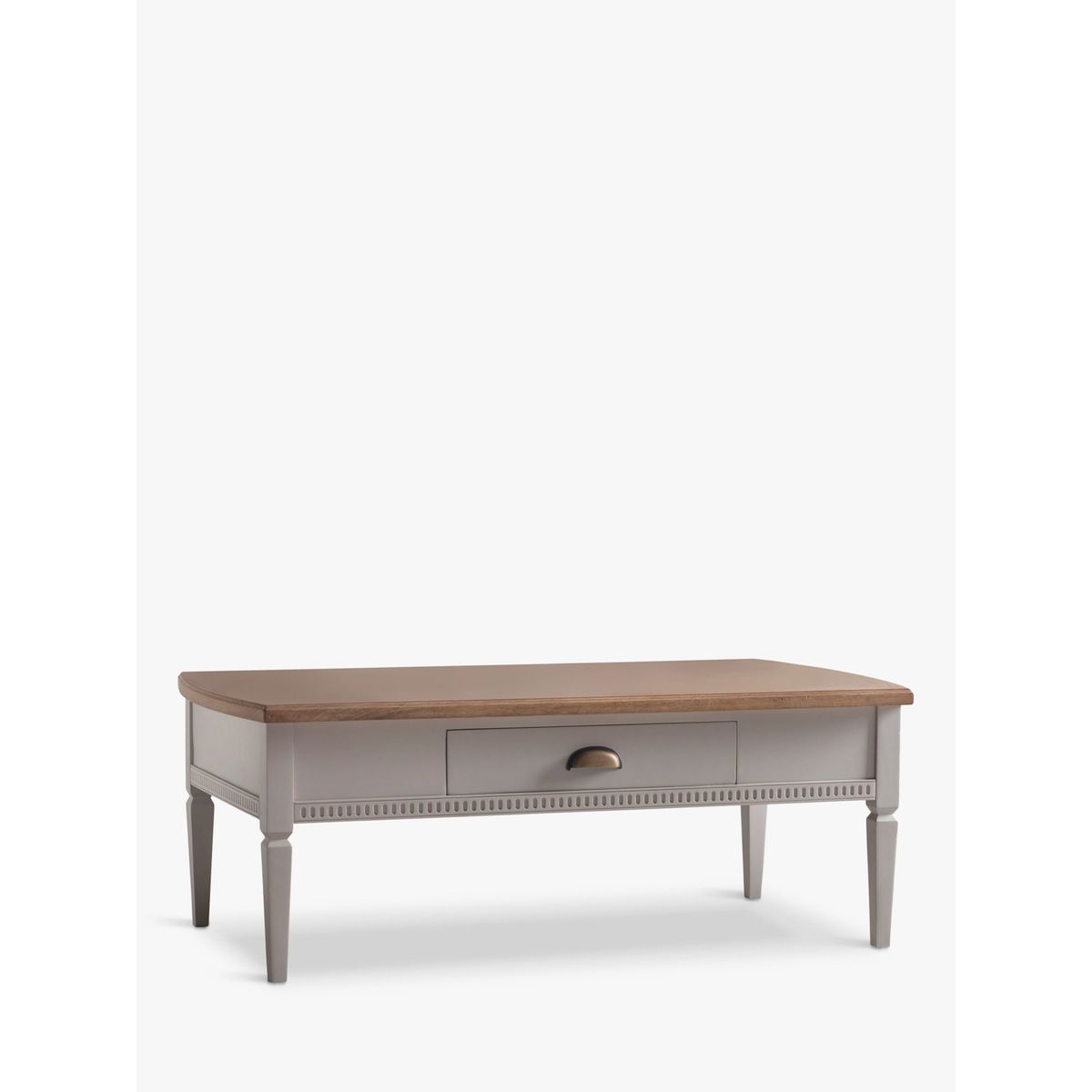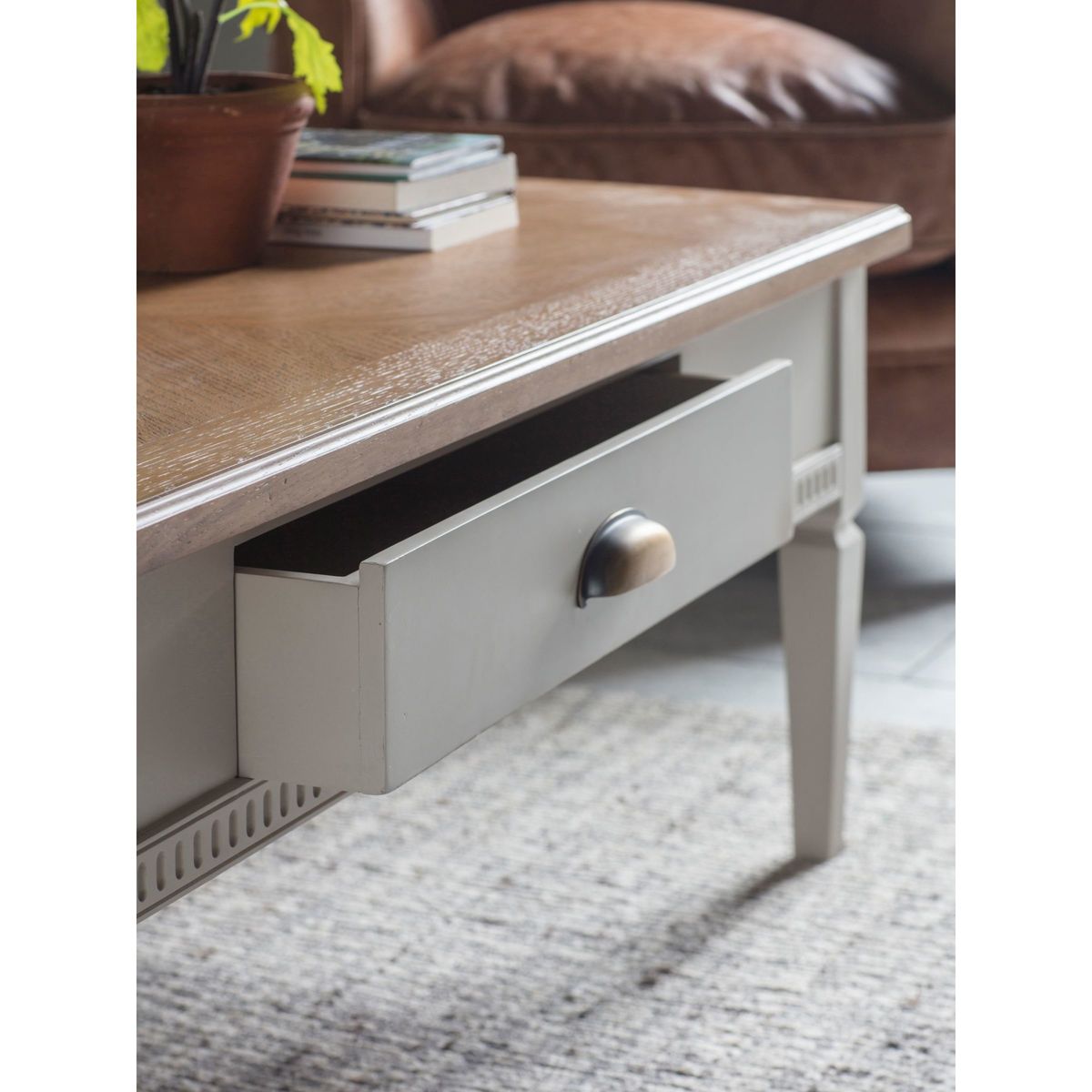 The painted base of this coffee table gives the design a fresh and contemporary feel. It's made from solid mahogany and accented with an inlaid parquet pattern made from oak veneers, while the surface top has been kept in a warm, natural finish. A practical and robust centrepiece for your living room, there's a handy drawer at the front which is ideal for storing TV remotes and magazines. Want to see it first? You may want to see and get a feel for the furniture in one of our shops before ordering. We'll be able to tell you where the range you'd like to view is on display.