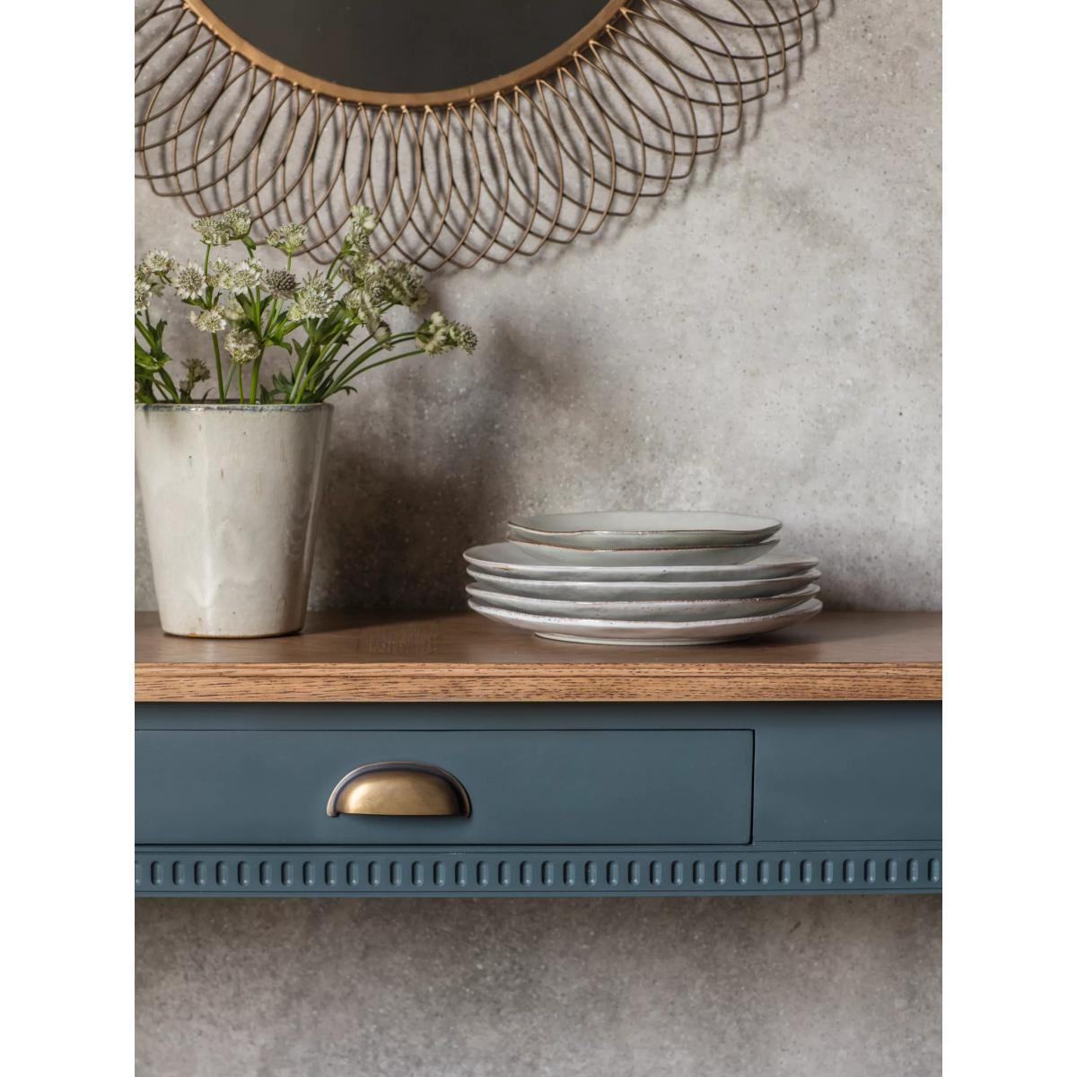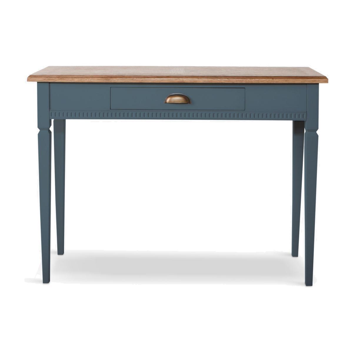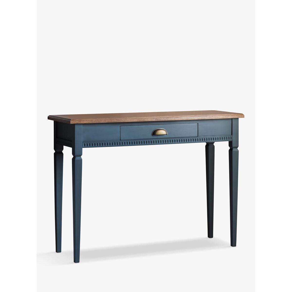 The painted base of this console table gives it a fresh and contemporary look. Ideal for hallways or smaller spaces, it's made from solid mahogany and accented with an inlaid parquet pattern made from oak veneers. The surface top has been kept in a warm, natural finish that highlights the wood grain. There's also an integrated drawer which is handy for storage. Want to see it first? You may want to see and get a feel for the furniture in one of our shops before ordering. We'll be able to tell you where the range you'd like to view is on display.